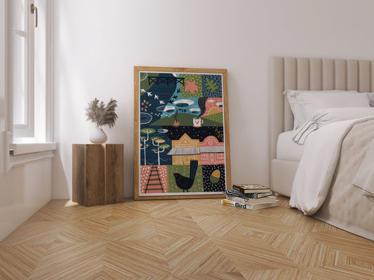 Elli's artwork is characterized by playful colours and whimsical shapes, reflecting the carefree essence of a vacation in time. Each piece is a vibrant snapshot, capturing the beauty and spirit of Western Australia's landscapes and lifestyle.