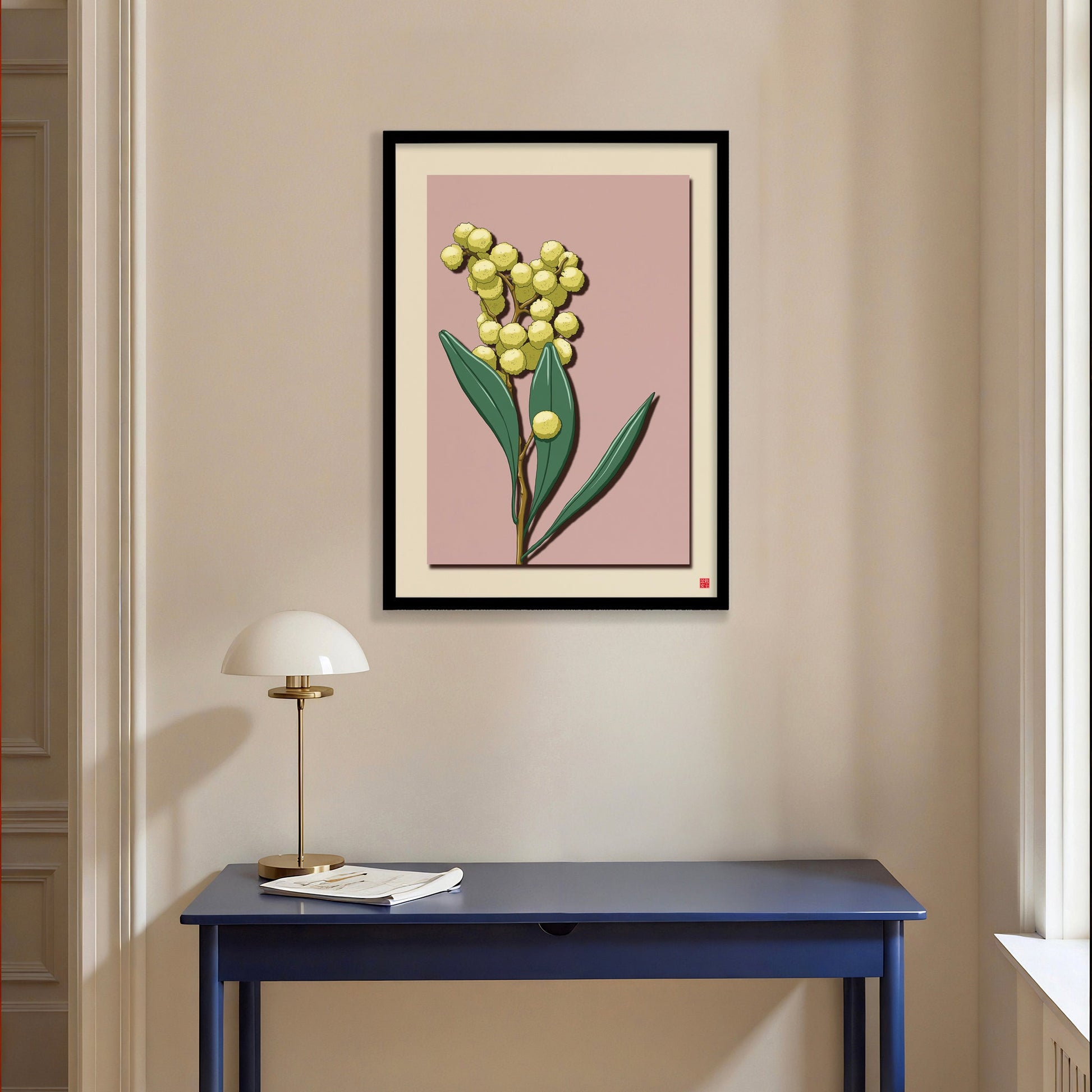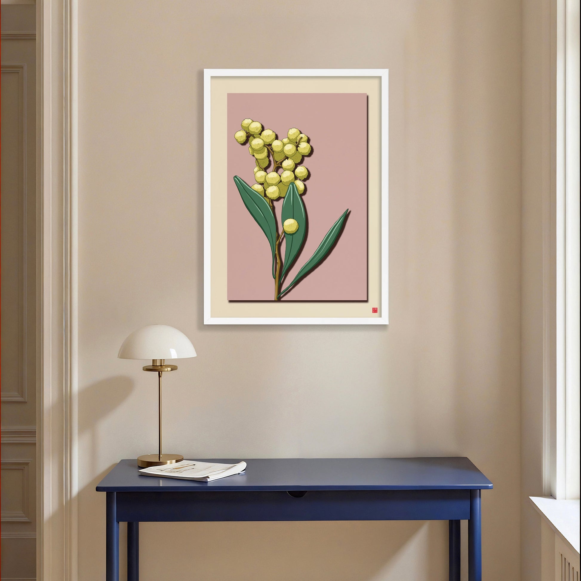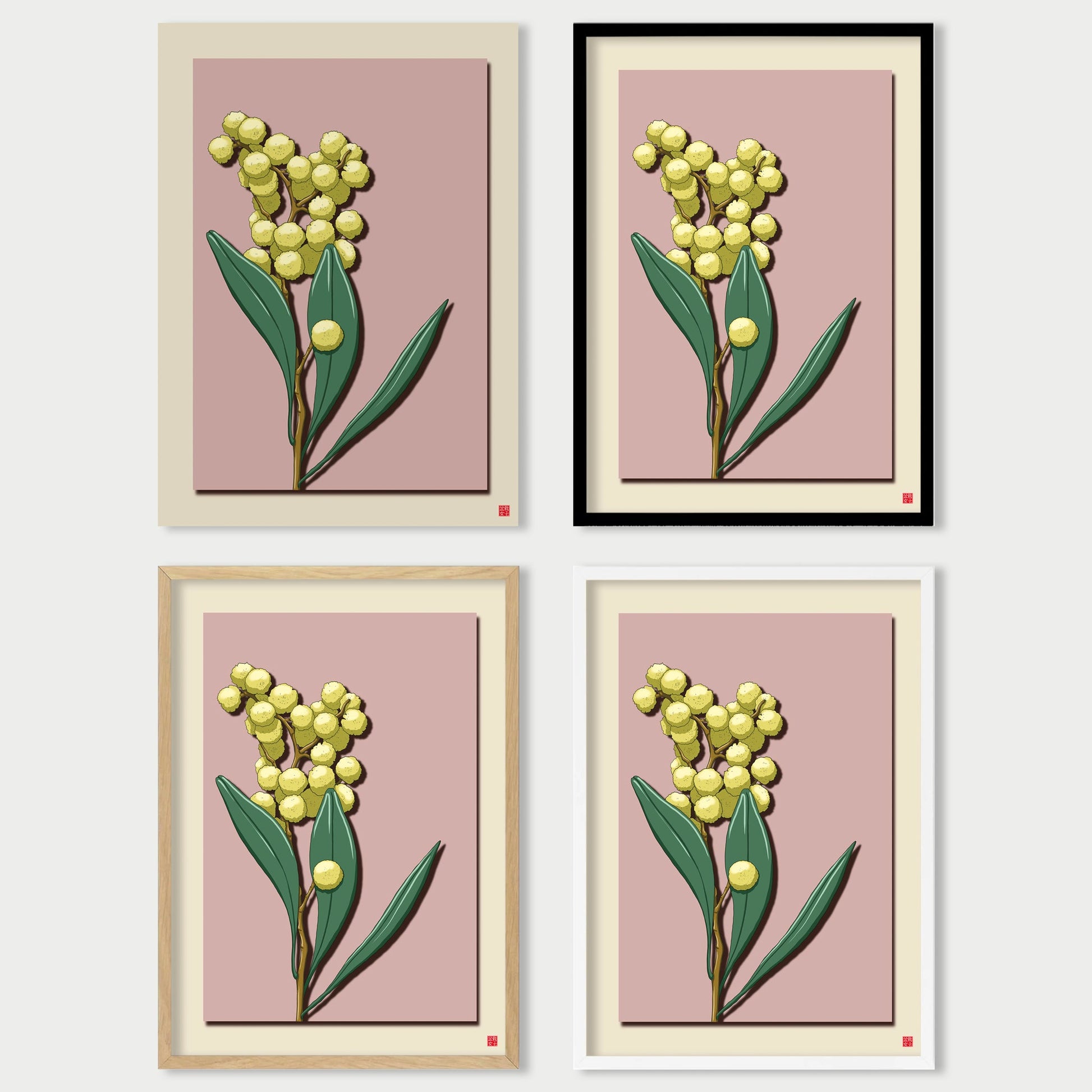 Fine art print created by Sam Leahy features the distinct golden flowers of the acacia, a plant native to Australia.