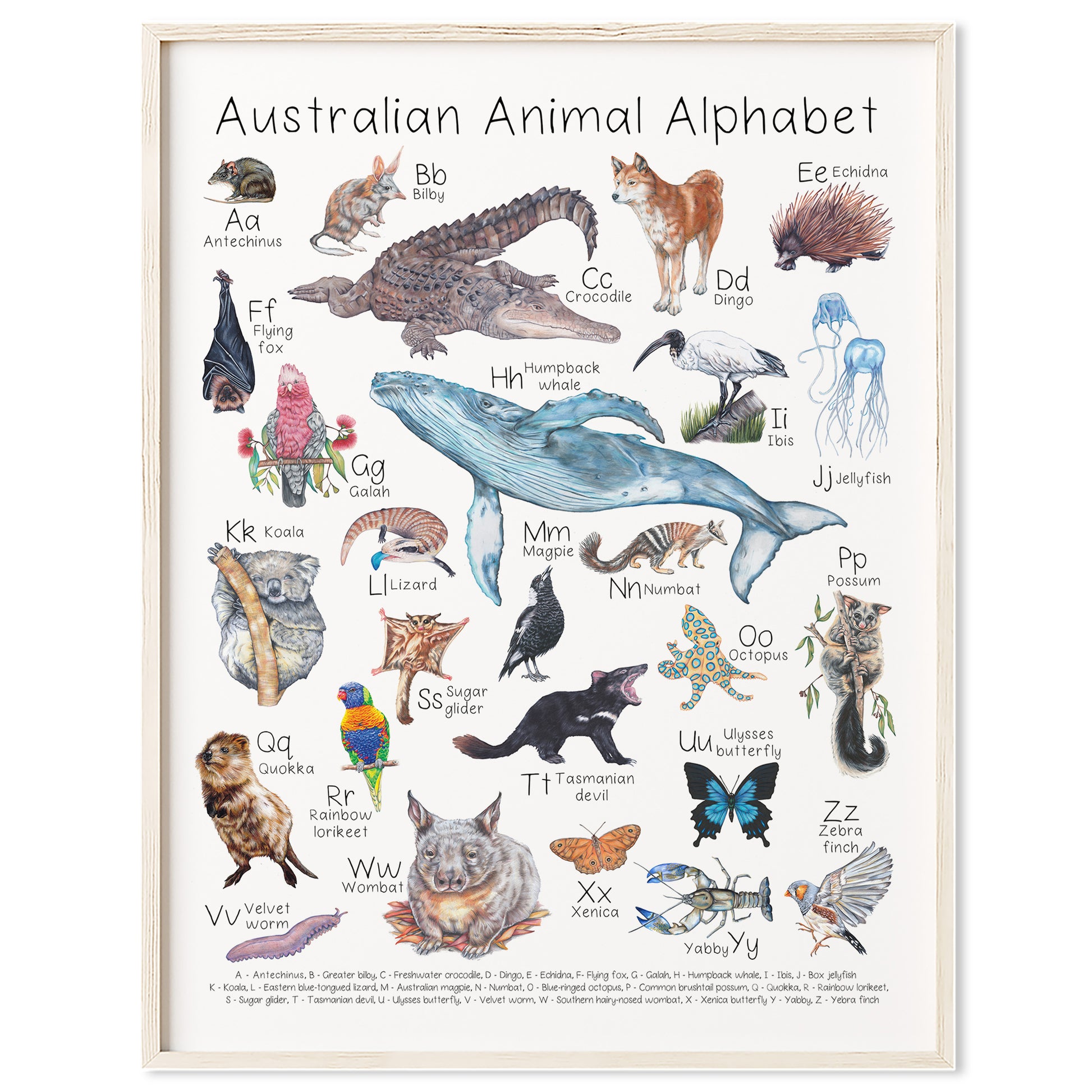 Fine art print created by Abbi McClure playfully explores the wonders of Australian wildlife with this series of hand-drawn illustrations. Perfect for educating little ones about their favourite Australian animals in a playful and artistic way.