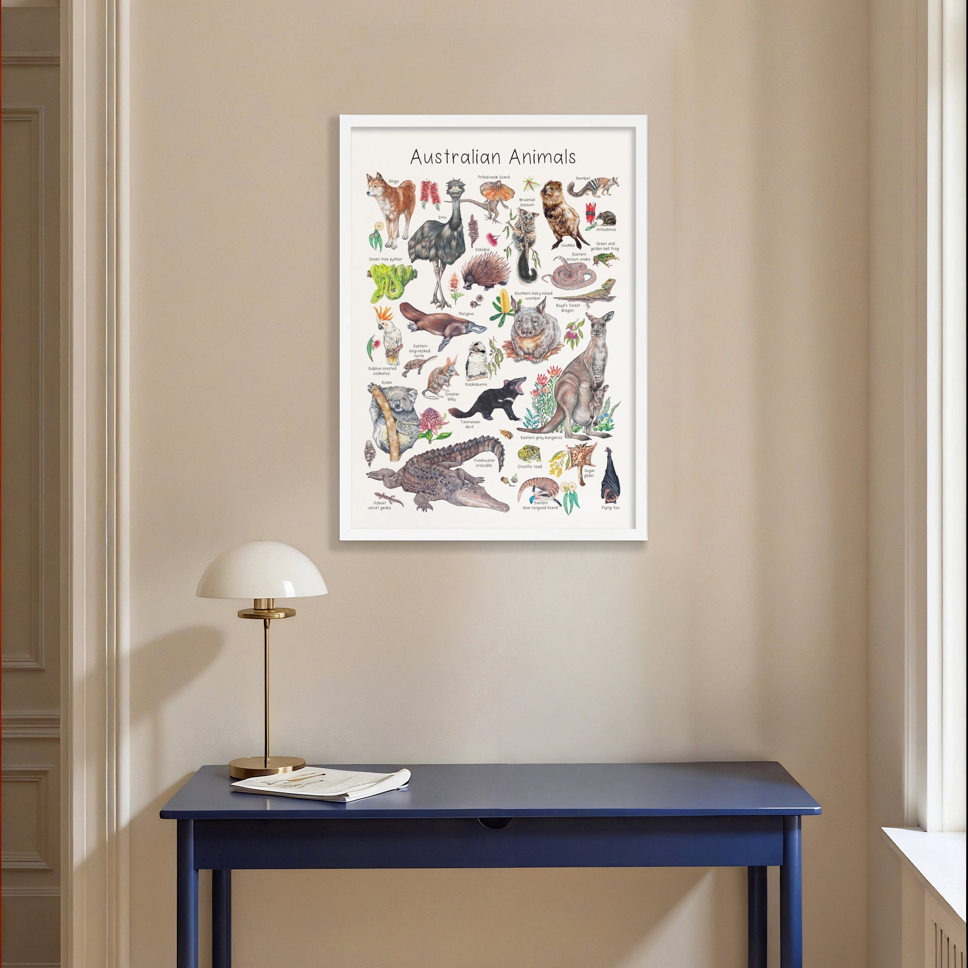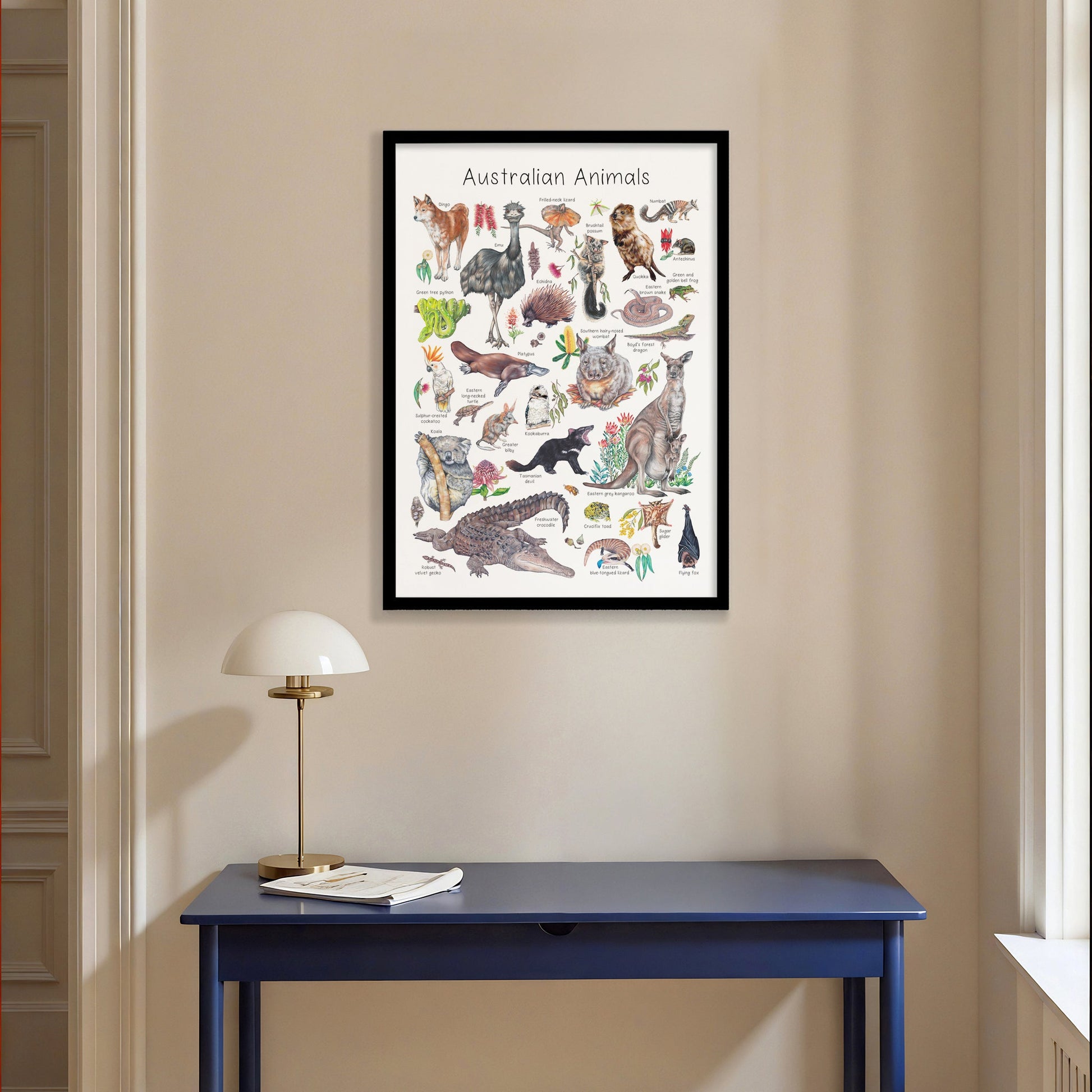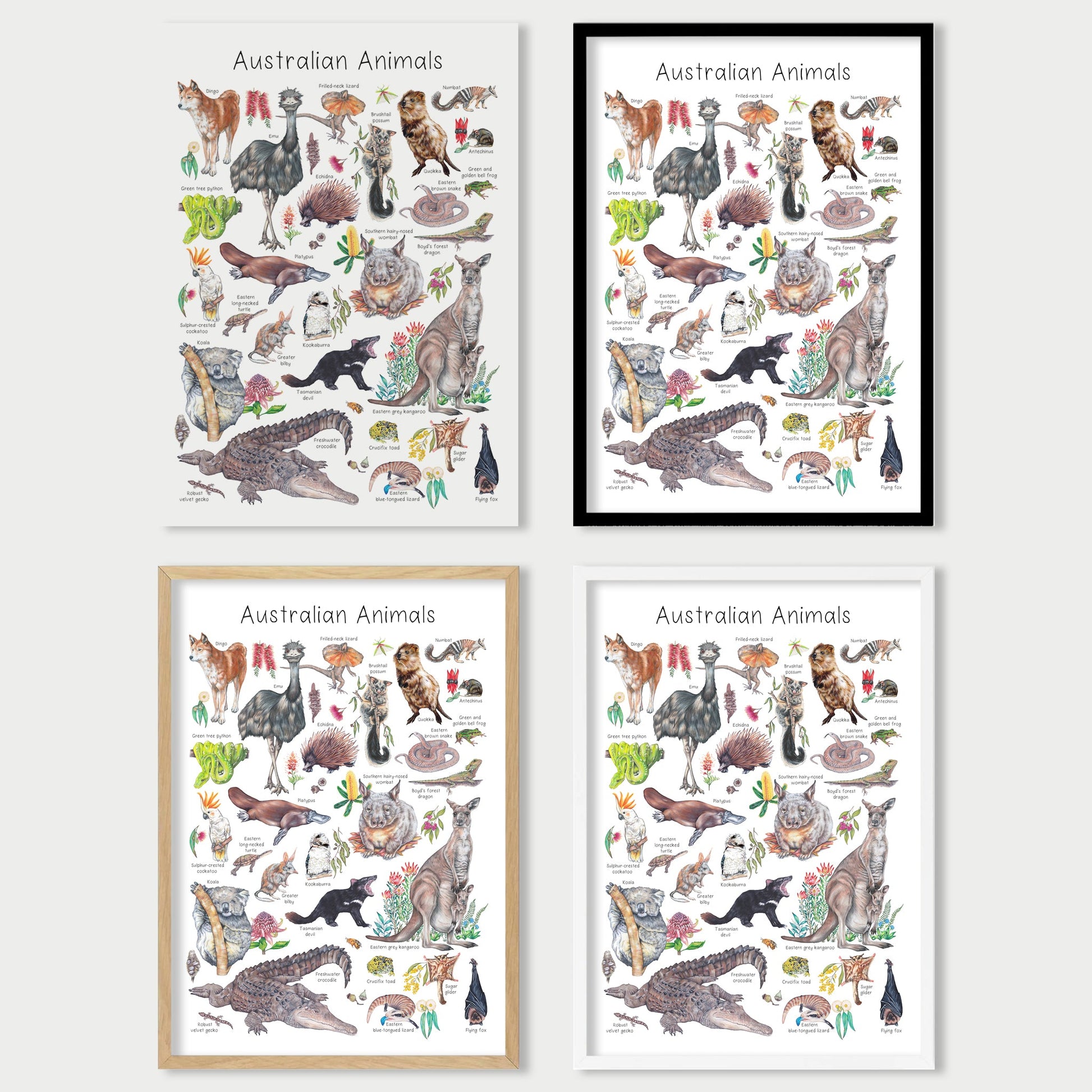 Fine art print created by Abbi McClure playfully explores the wonders of Australian wildlife with this series of hand-drawn illustrations. Perfect for educating little ones about their favourite Australian animals in a playful and artistic way.