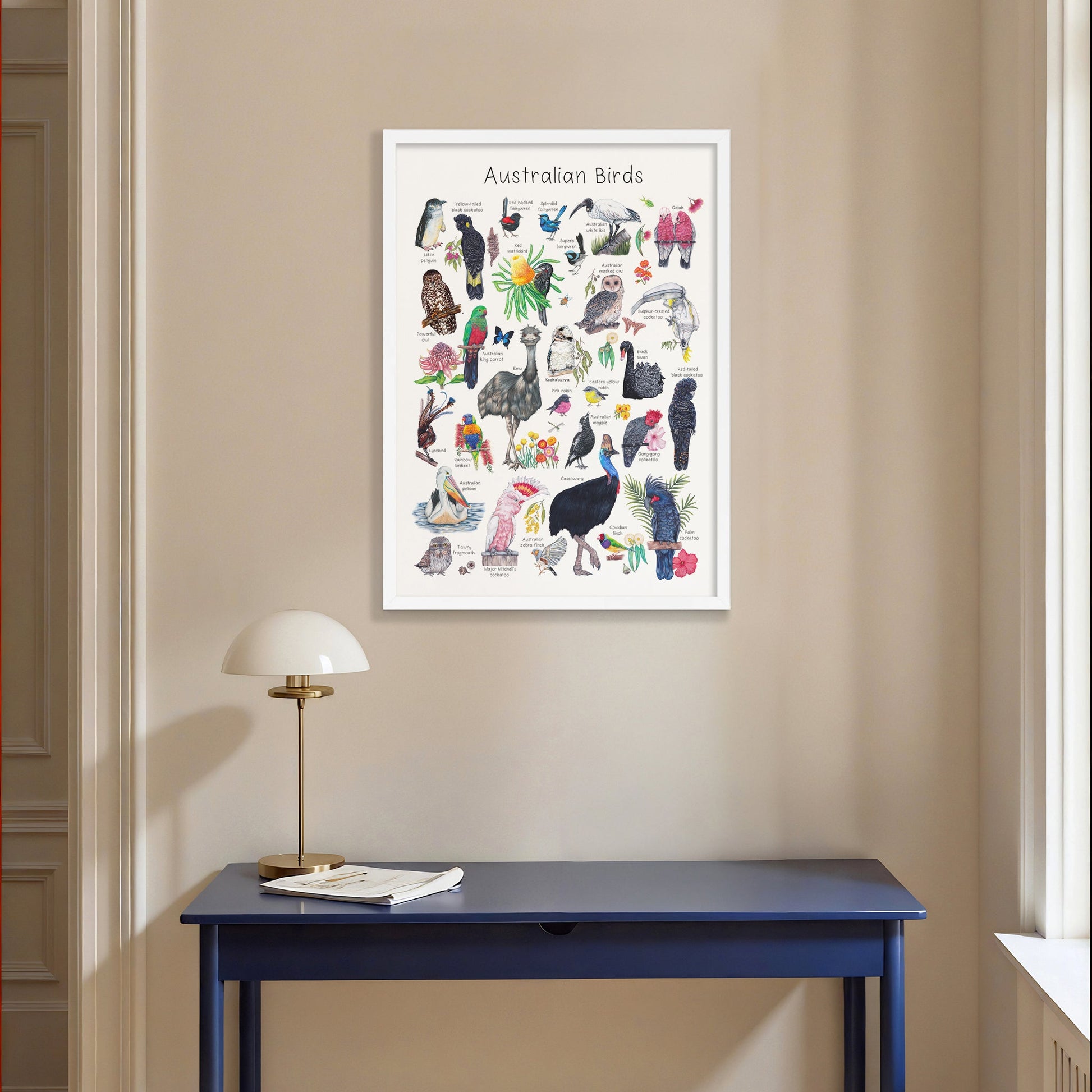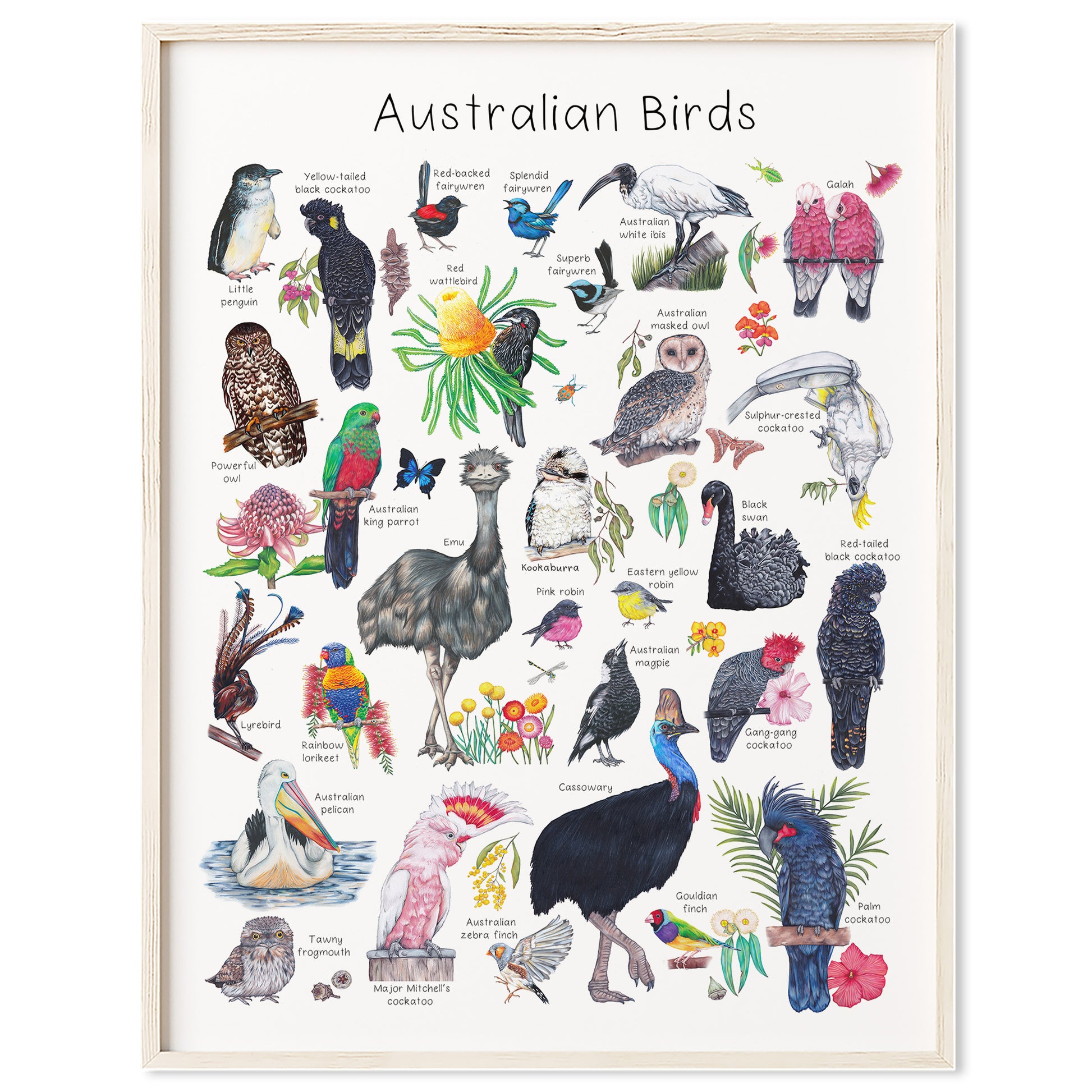 Fine art print created by Abbi McClure playfully explores the wonders of Australian wildlife with this series of hand-drawn illustrations. Perfect for educating little ones about their favourite Australian birds in a playful and artistic way.
