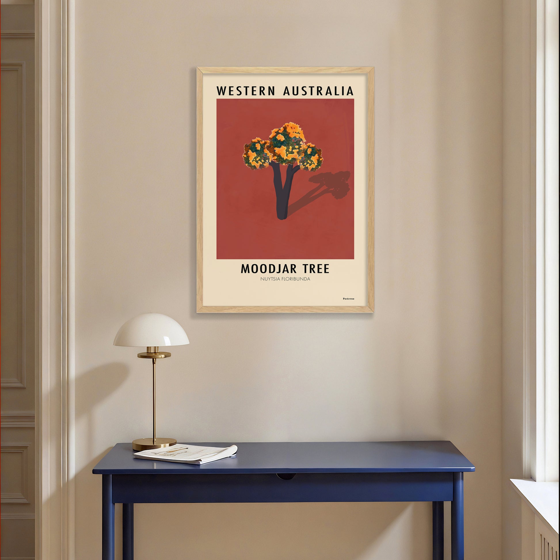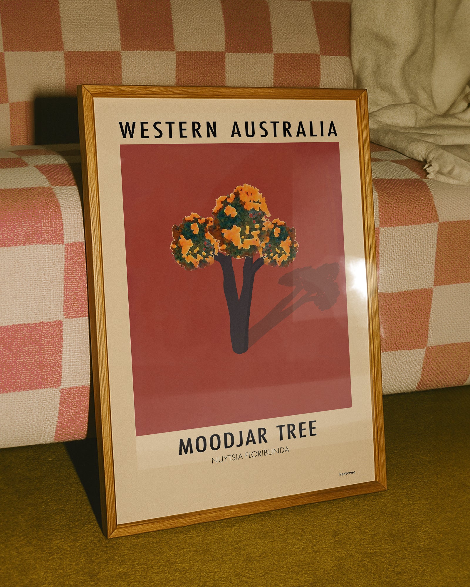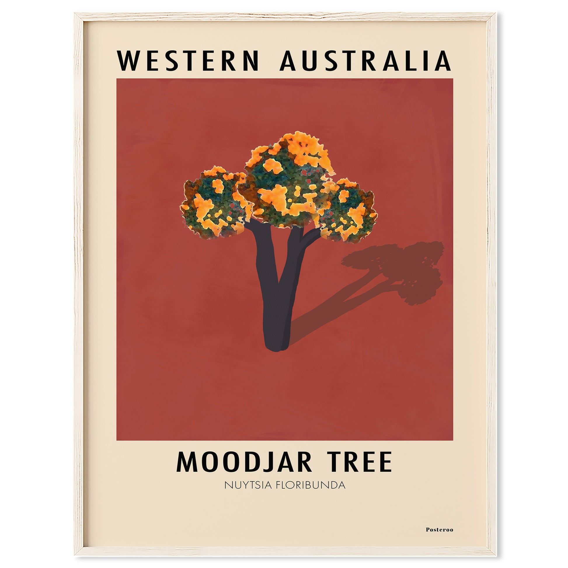 Fine art print by Joshua Kyle showcasing the radiant beauty of the flowering Moodjar tree (Nuytsia Floribunda). Adorned with vibrant yellow blossoms in December, the Moodjar tree blooms in harmony with Birak, the Aboriginal Noongar season of the young.