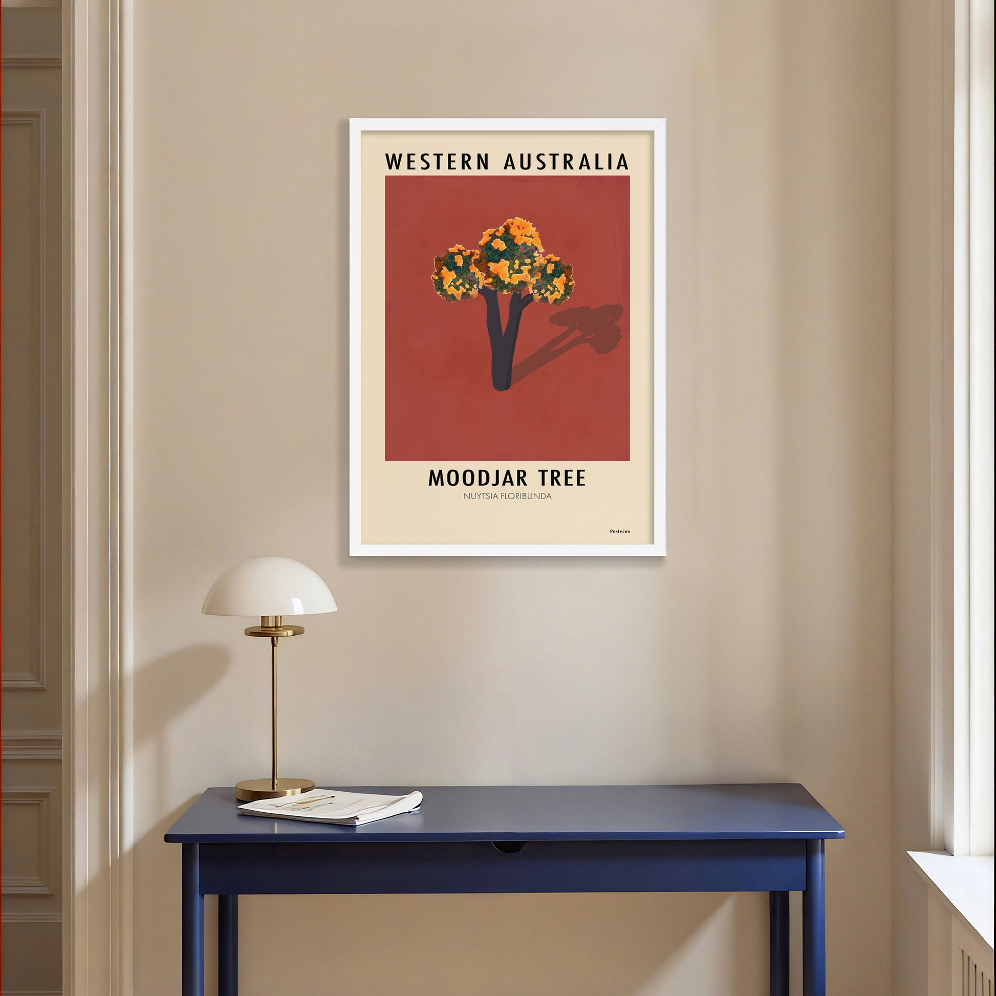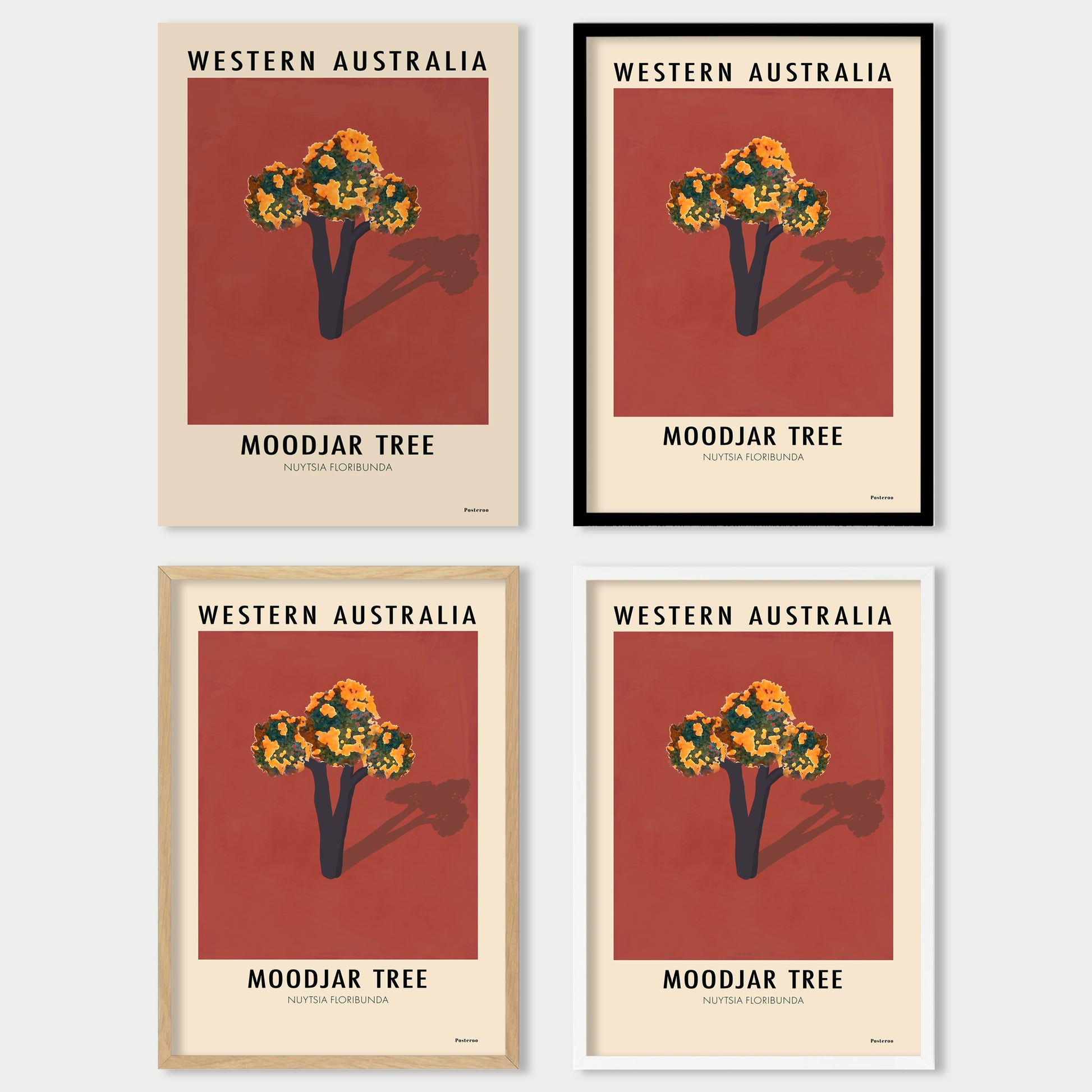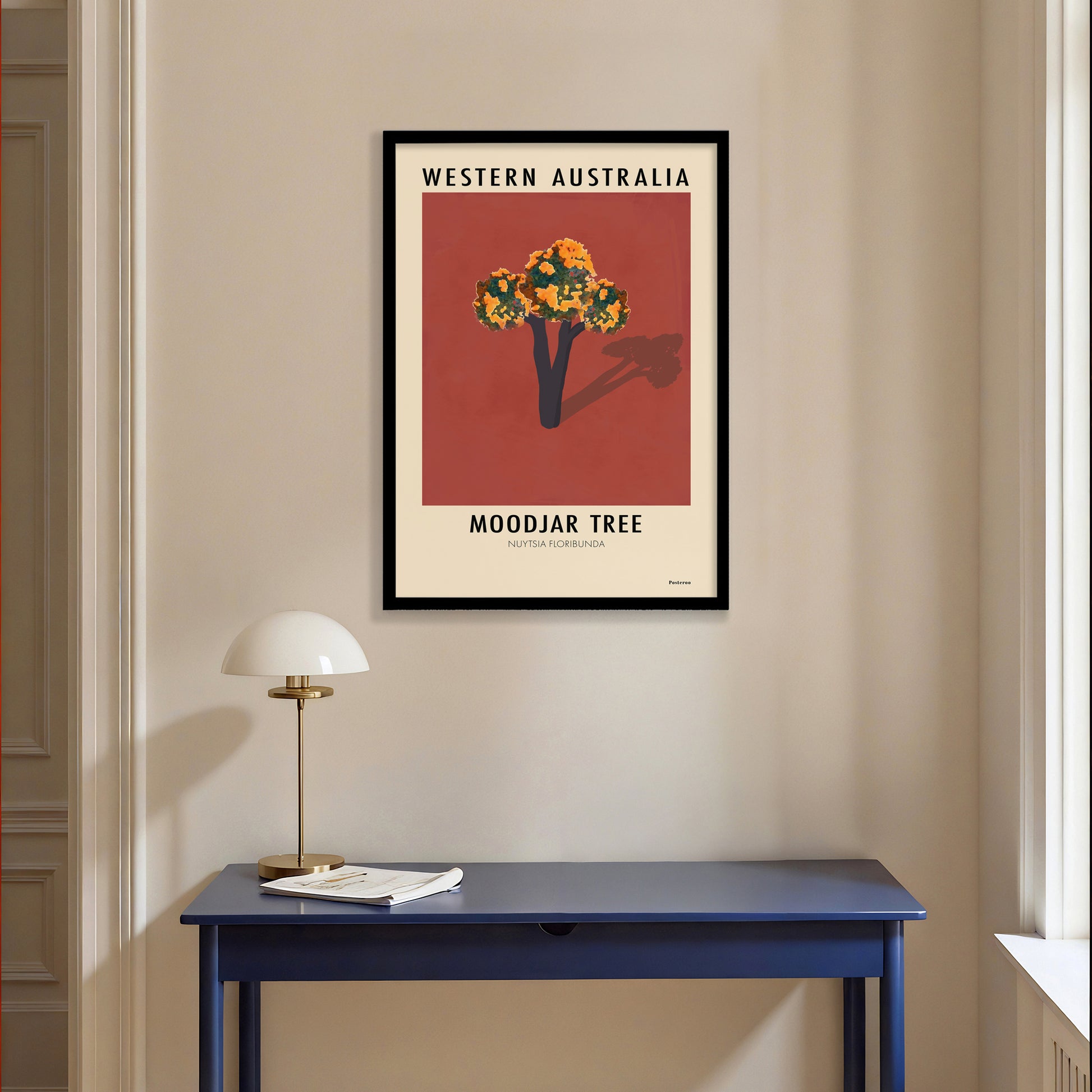 Fine art print by Joshua Kyle showcasing the radiant beauty of the flowering Moodjar tree (Nuytsia Floribunda). Adorned with vibrant yellow blossoms in December, the Moodjar tree blooms in harmony with Birak, the Aboriginal Noongar season of the young.