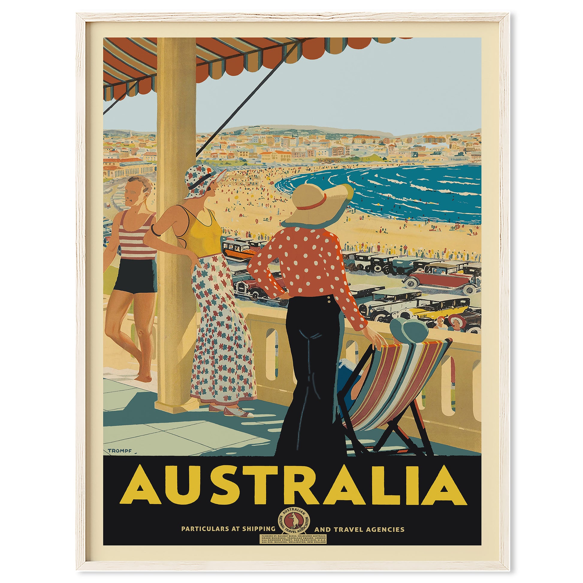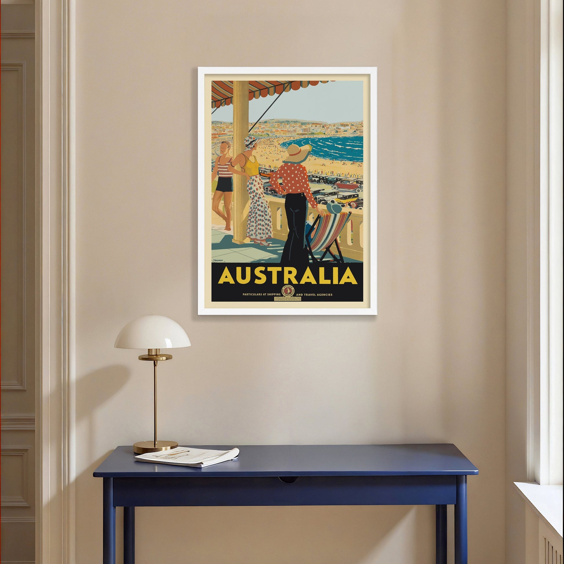 Australian vintage travel print of the iconic Bondi Beach in Sydney, NSW.