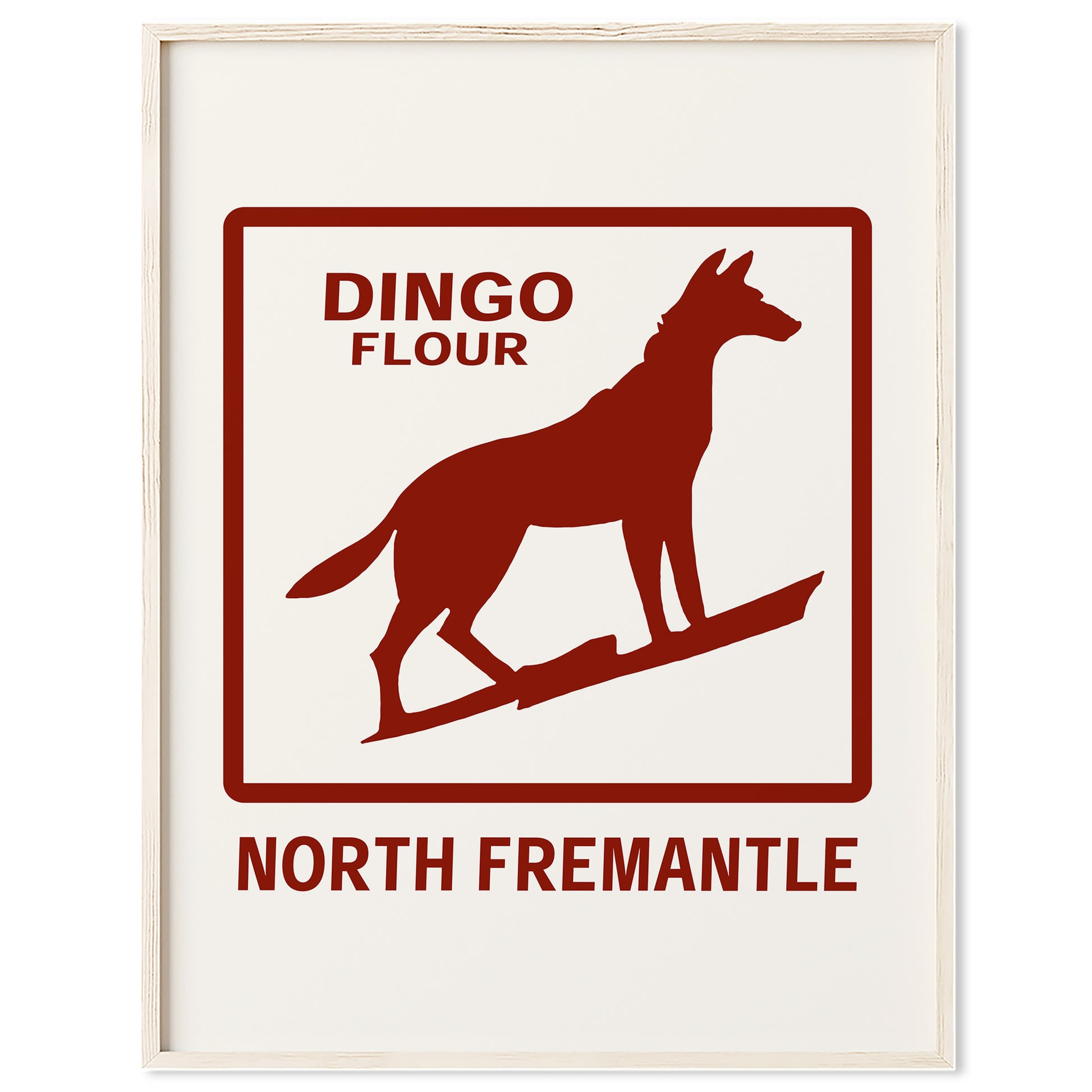 Art print of the Dingo Flour logo. Become a local by hanging this classic North Fremantle treasure at home.