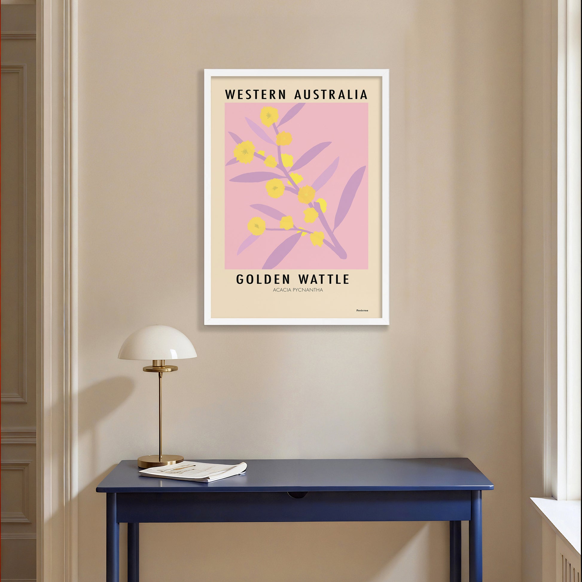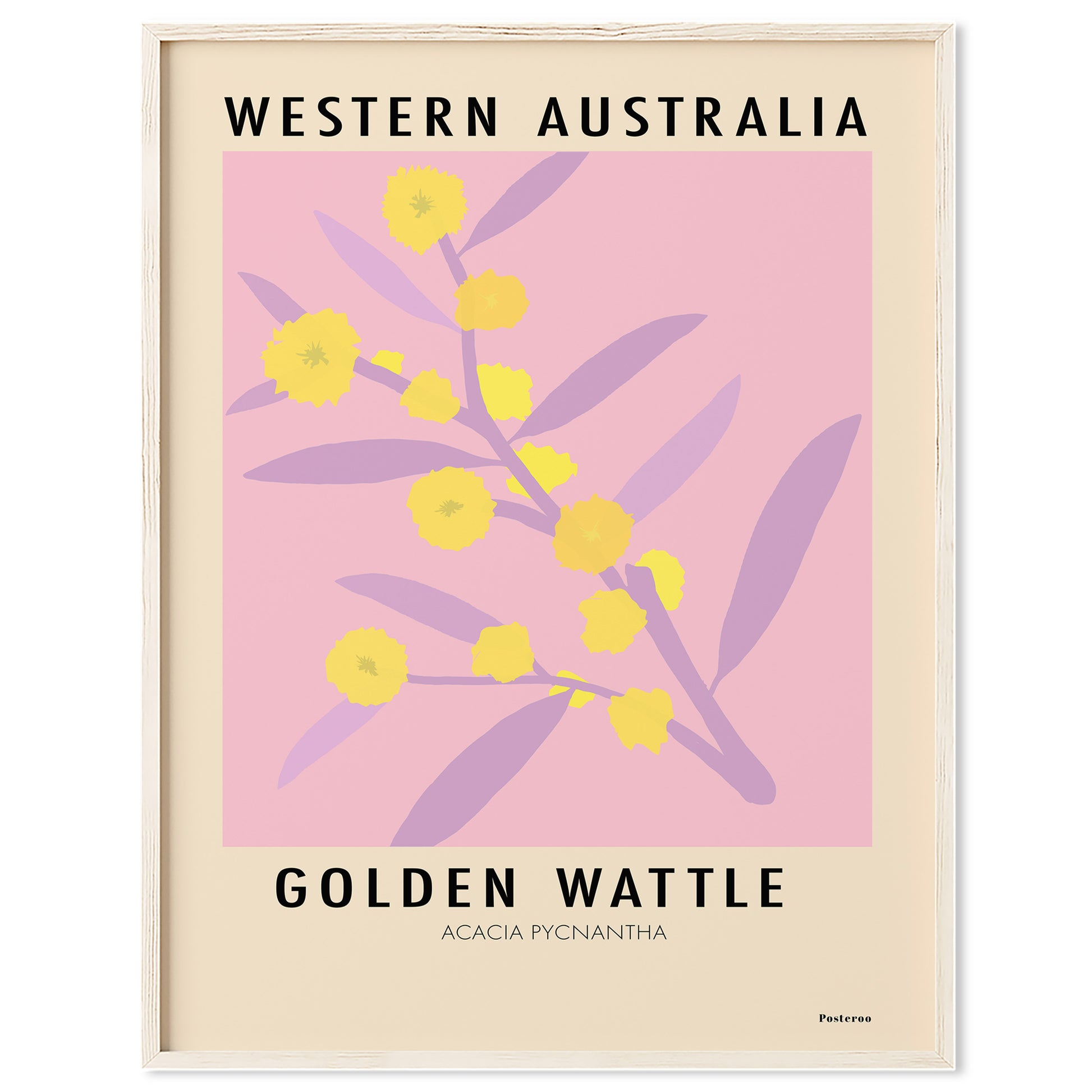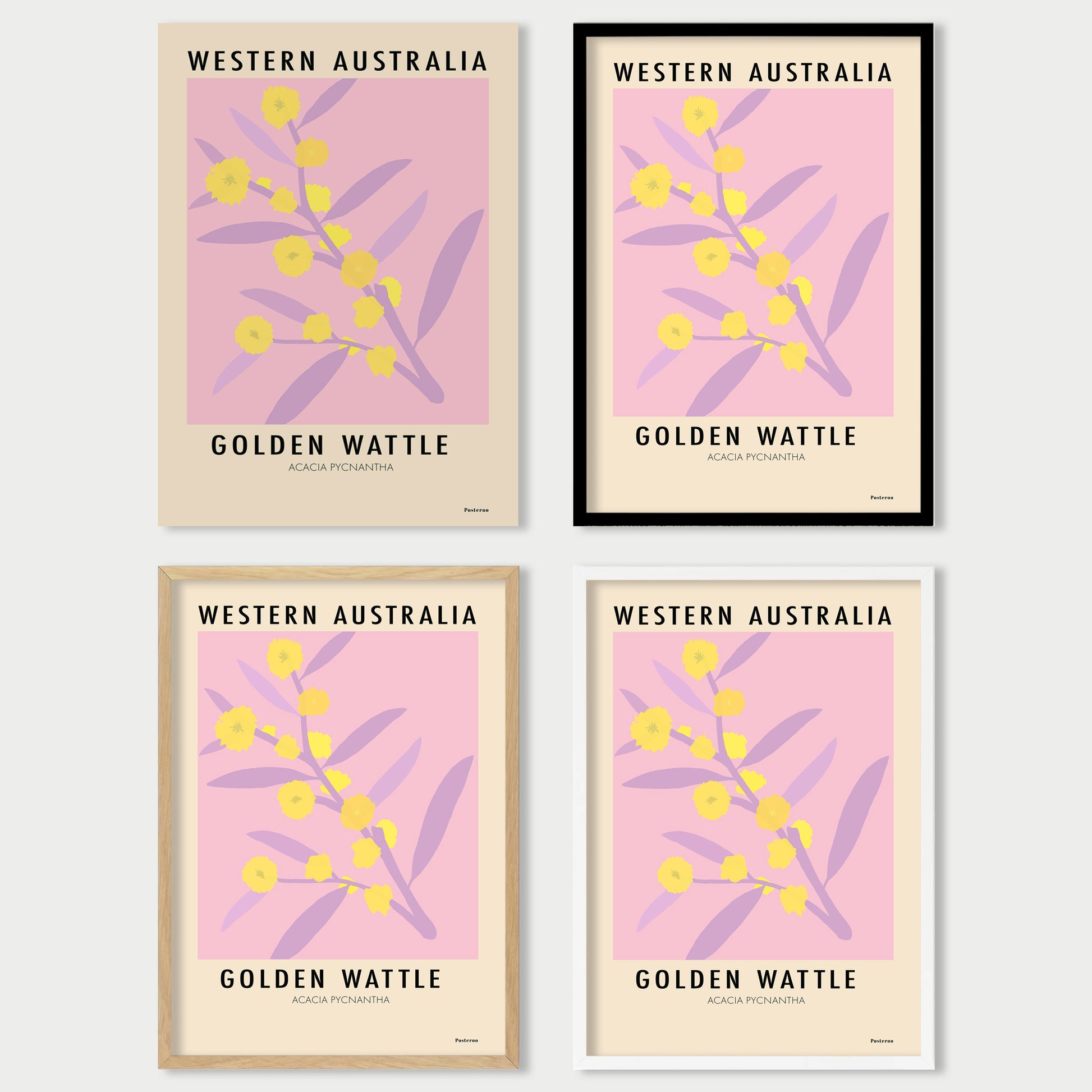 Fine art print by Joshua Kyle featuring the golden wattle (Acacia saligna). Native wildflower season begins around August, as the bushland bursts with yellow and pink blooms, marking Djilba, the Noongar season of conception.