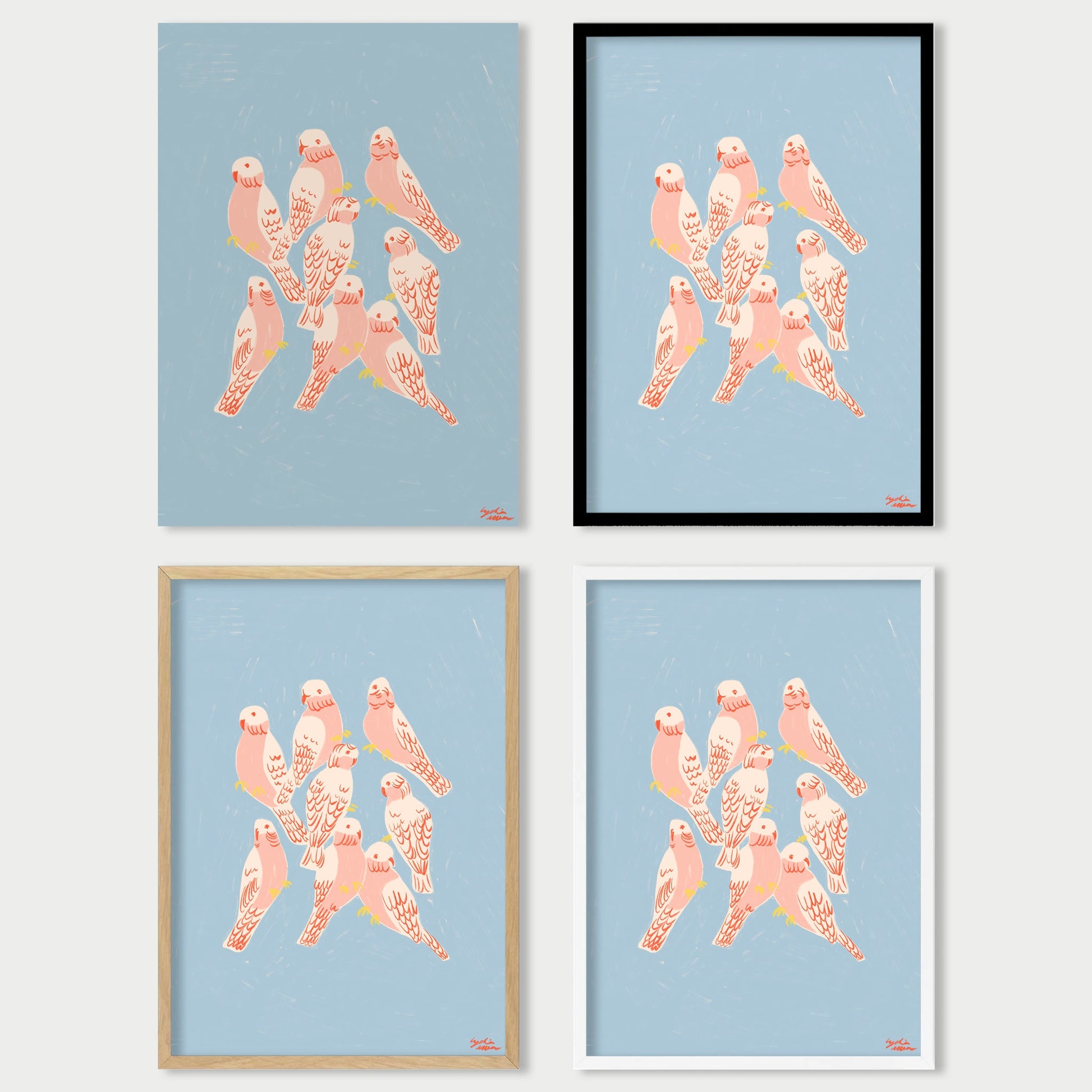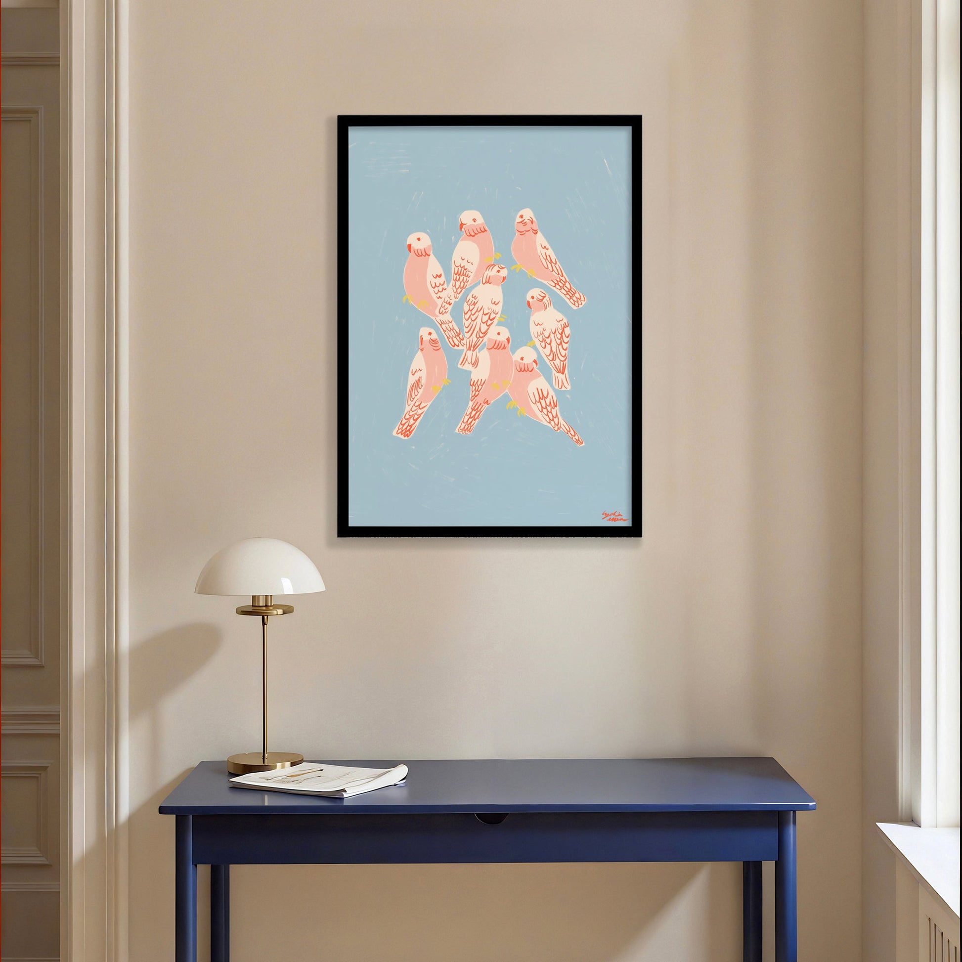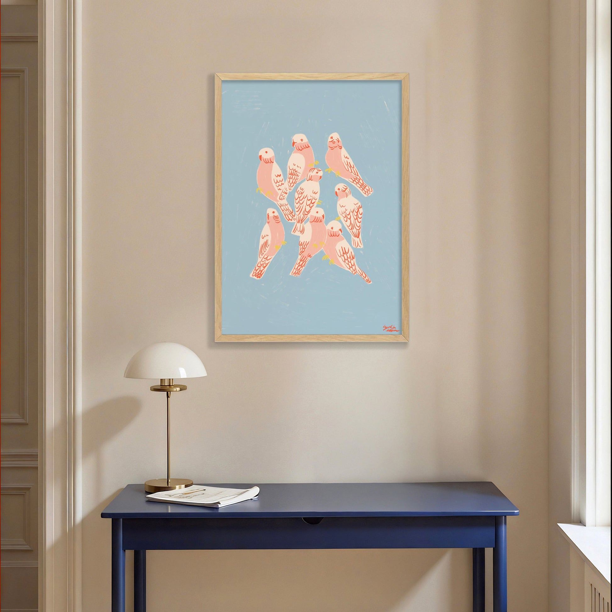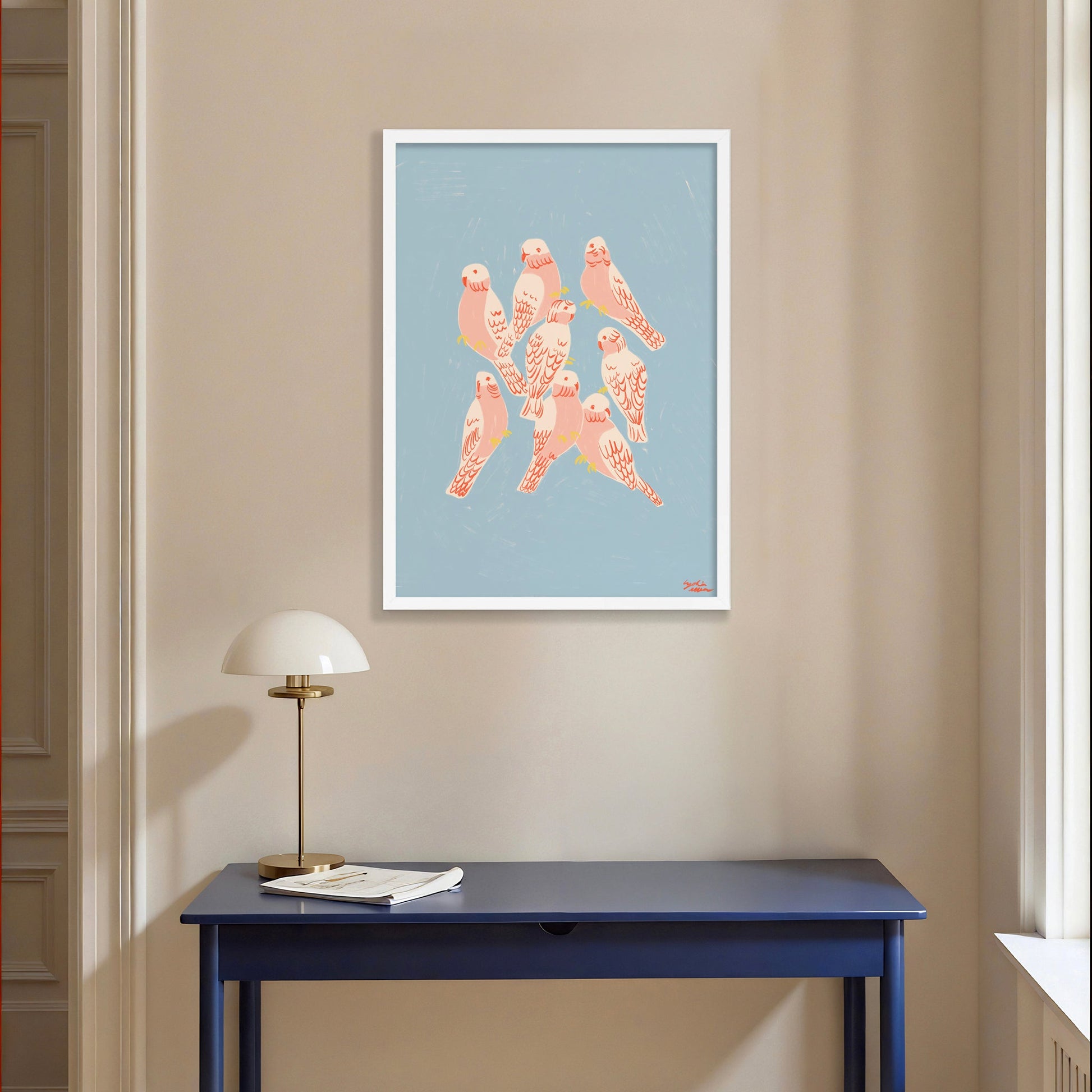 This art poster by Lydia Ellen playfully captures the pink and white cockatoo, also known as a Galah. In Australian culture, the Galah symbolizes the outback's spirit and resilience, embodying the friendly, laid-back attitude cherished by Australians.