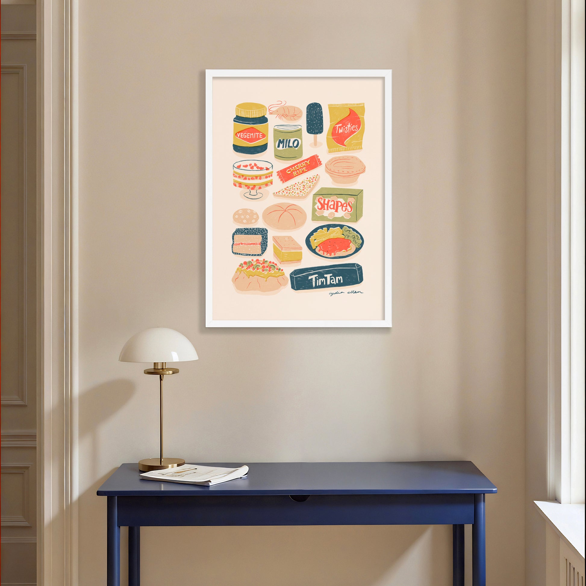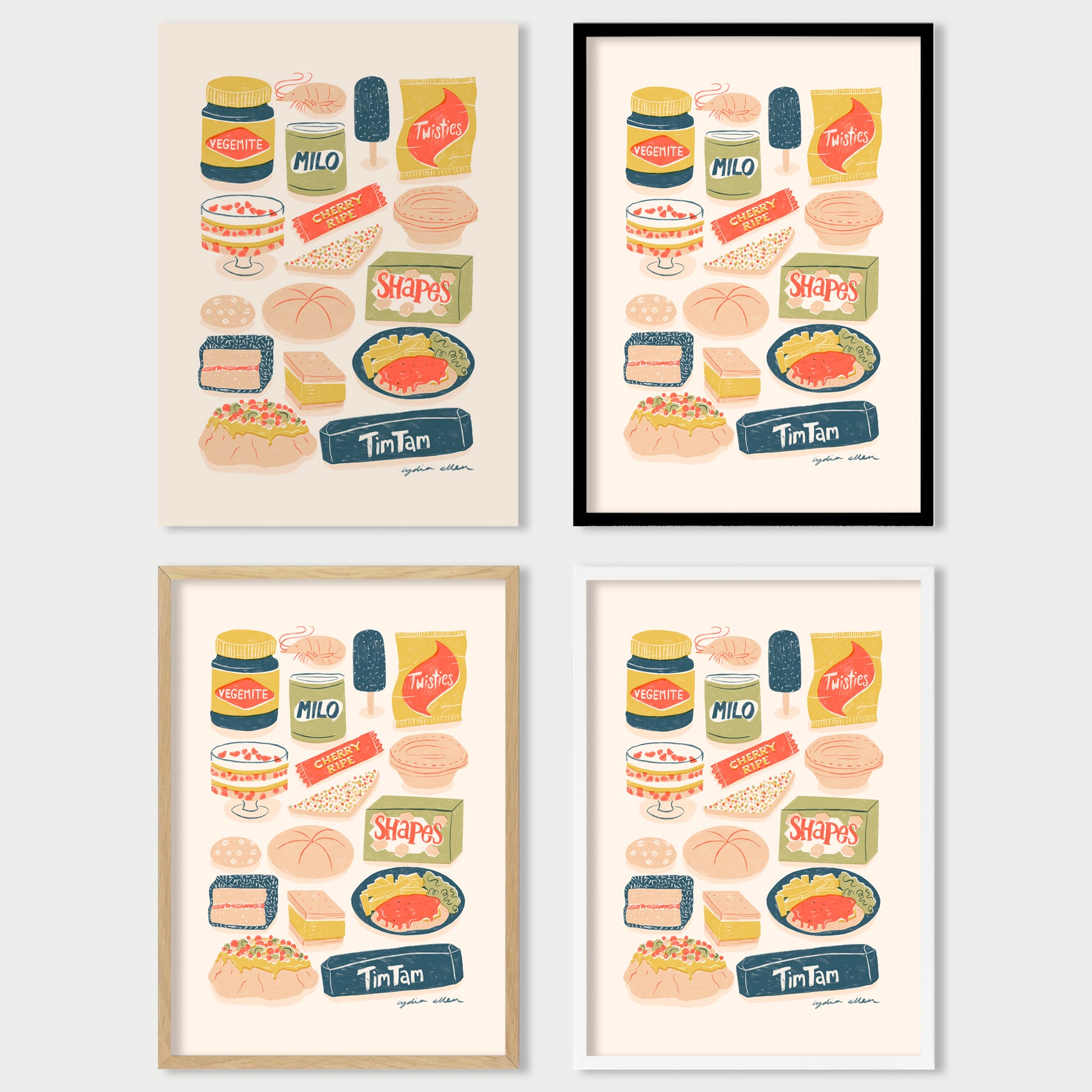 This fine art print by Lydia Ellen brings a culinary nostalgia to your home with these playfully illustrations of Australia most iconic sweet and savoury delights.
