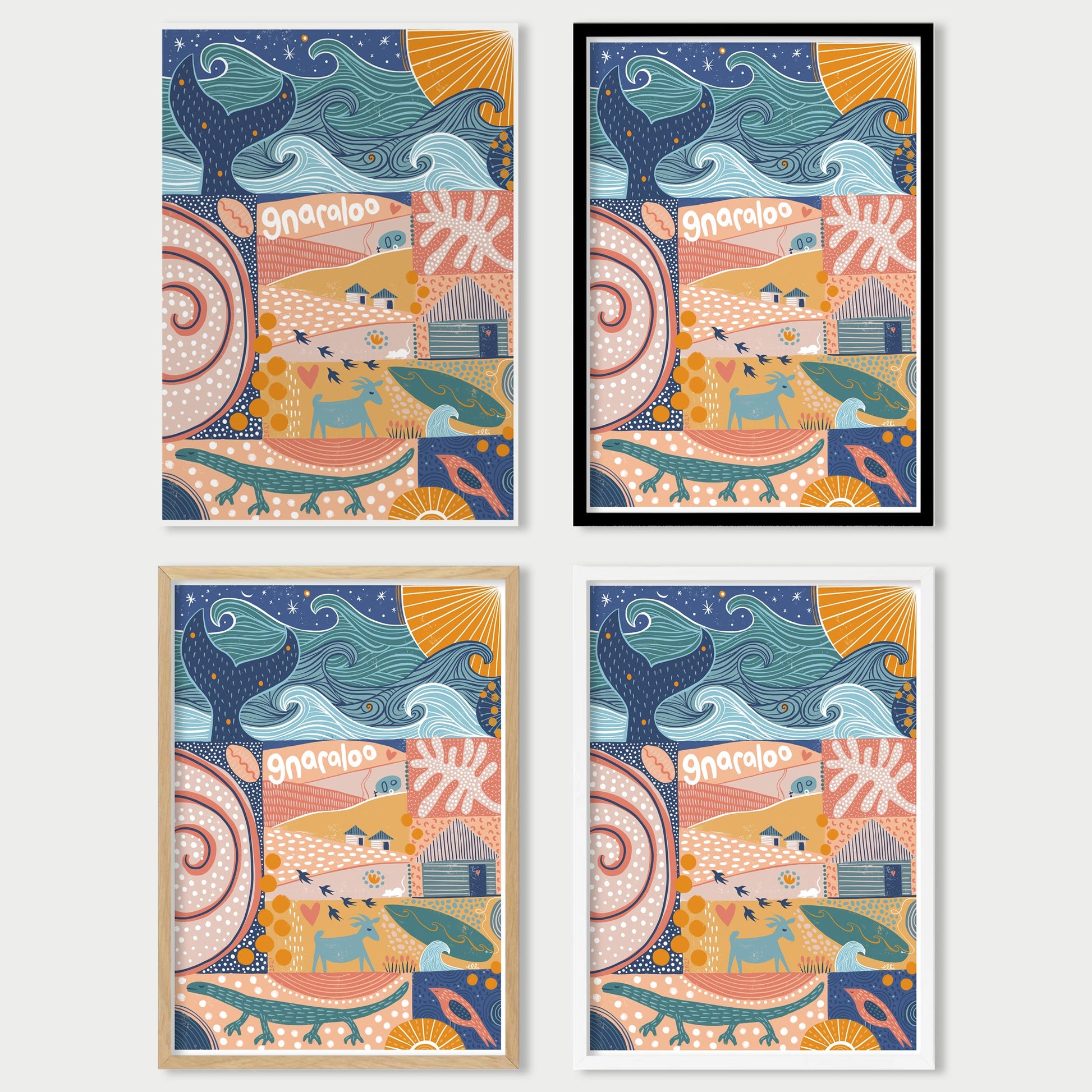 This fine art print by Elli Moody of Gnaraloo Station, a remote pastoral lease in Western Australia, focuses on its rugged and untouched natural beauty. Famous for its stunning coastal scenery and thriving marine life, Gnaraloo is a sanctuary for adventure seekers and nature lovers. The piece playfully captures the wild, untamed spirit of the area, emphasizing its significance as a haven for both wildlife and human exploration.