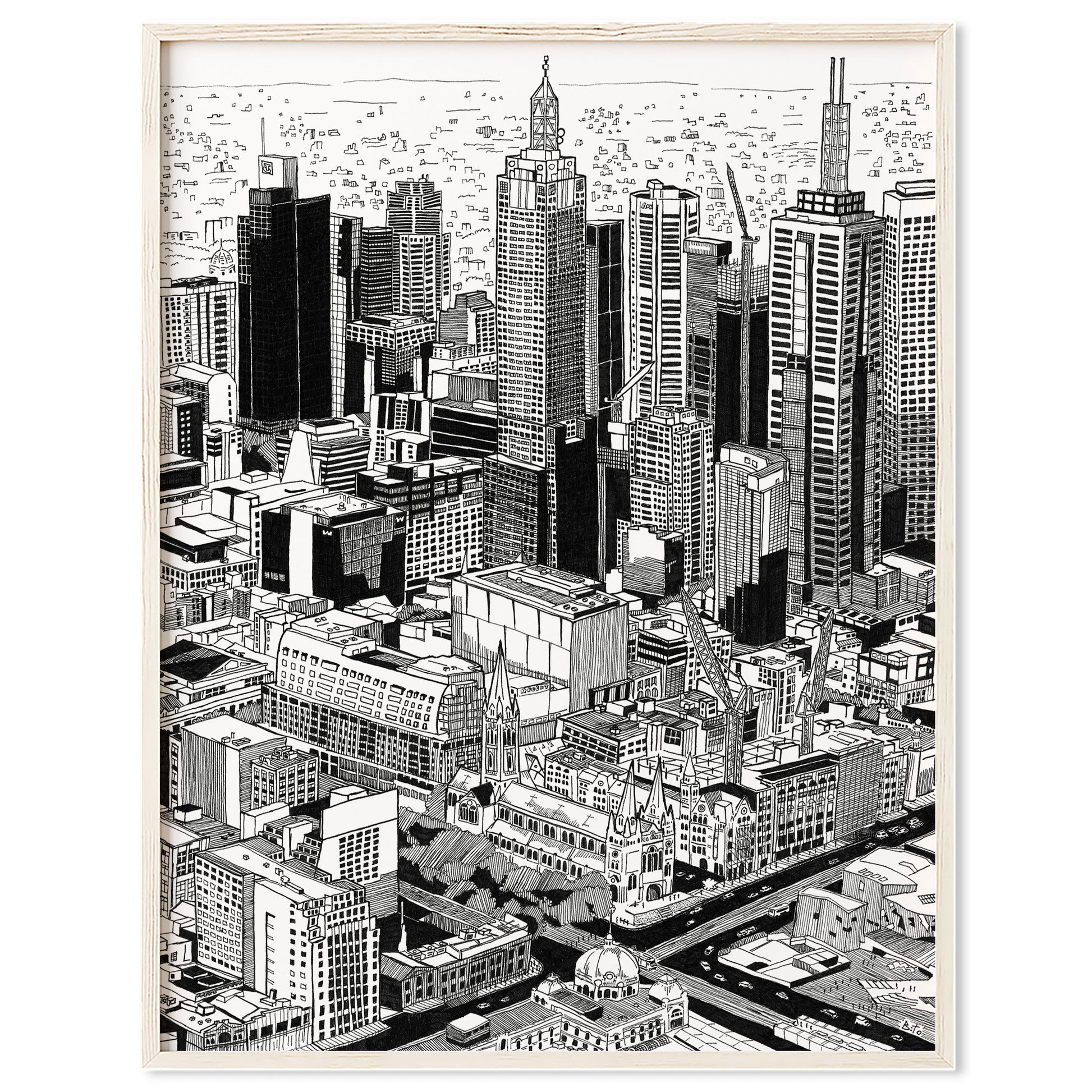 Melbourne CBD created by Chilean artist Art Beto captures moments in time around Melbourne with his hand drawn illustration made with a macro ink marker.