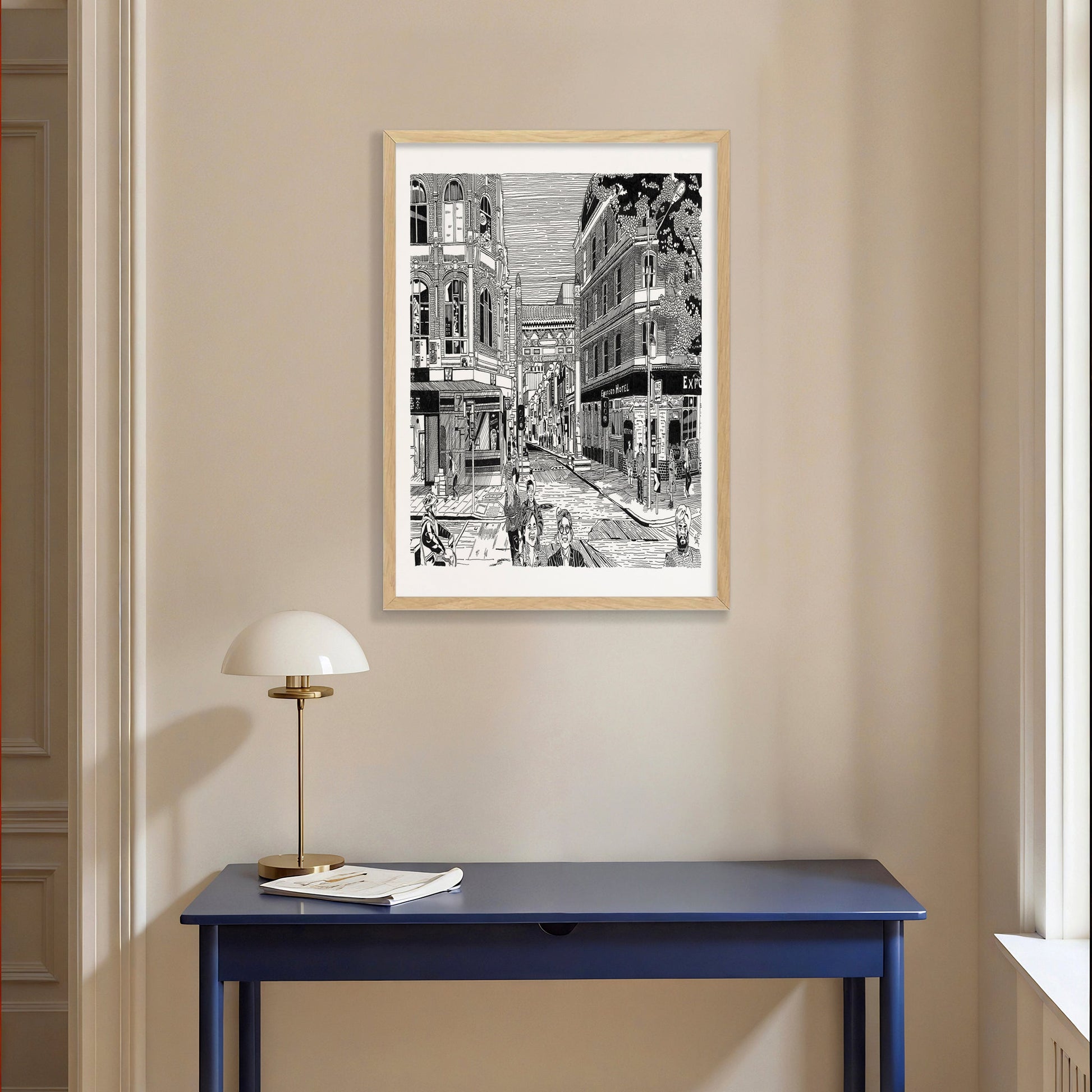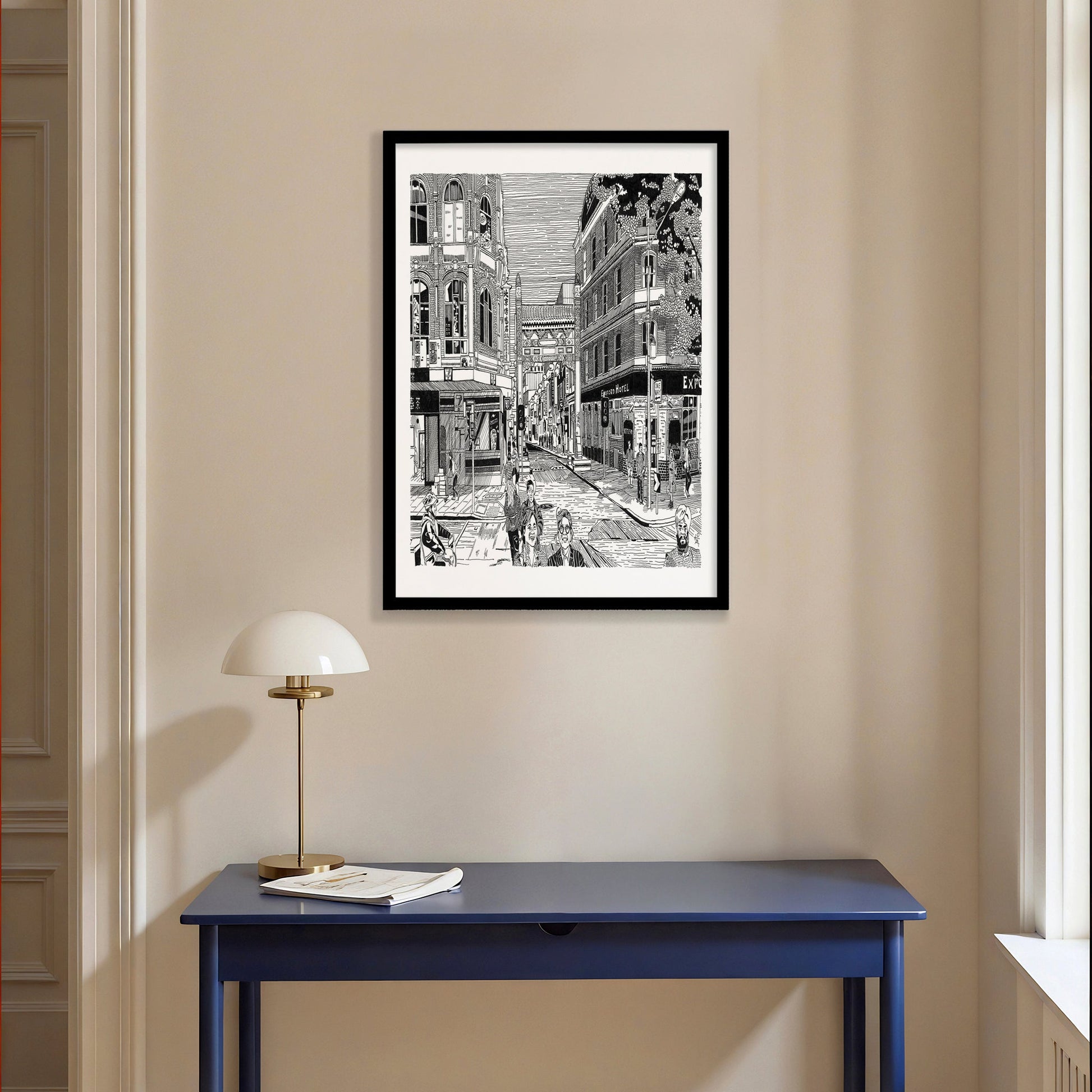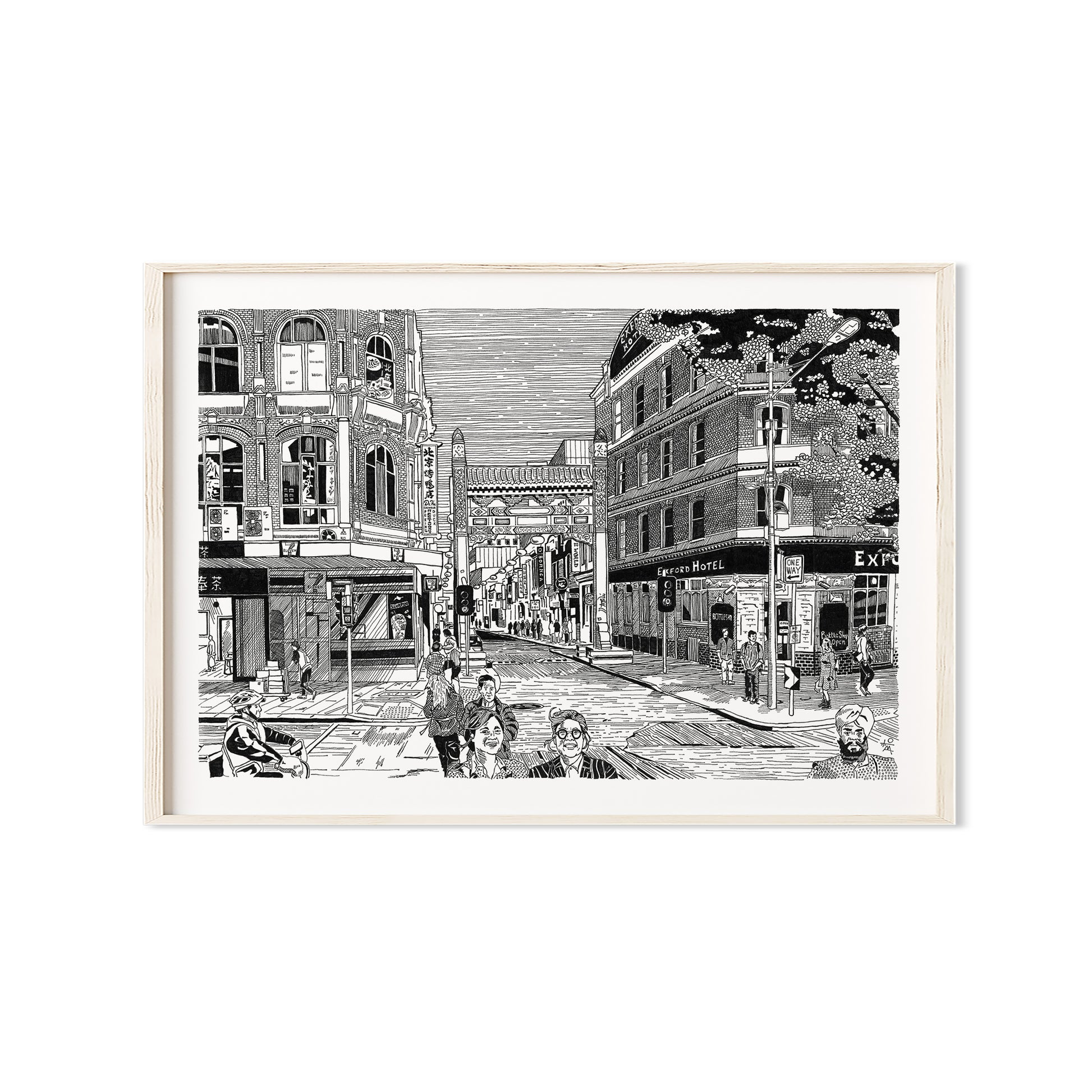 Fine art print Melbourne Chinatown created by Chilean artist Art Beto captures moments in time around Melbourne with his hand drawn illustration made with a macro ink marker.