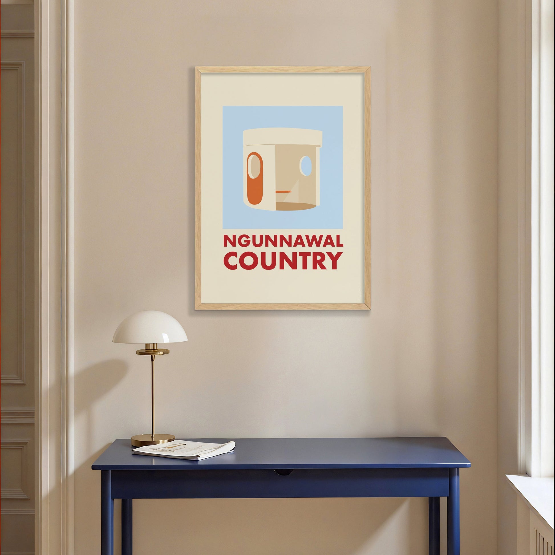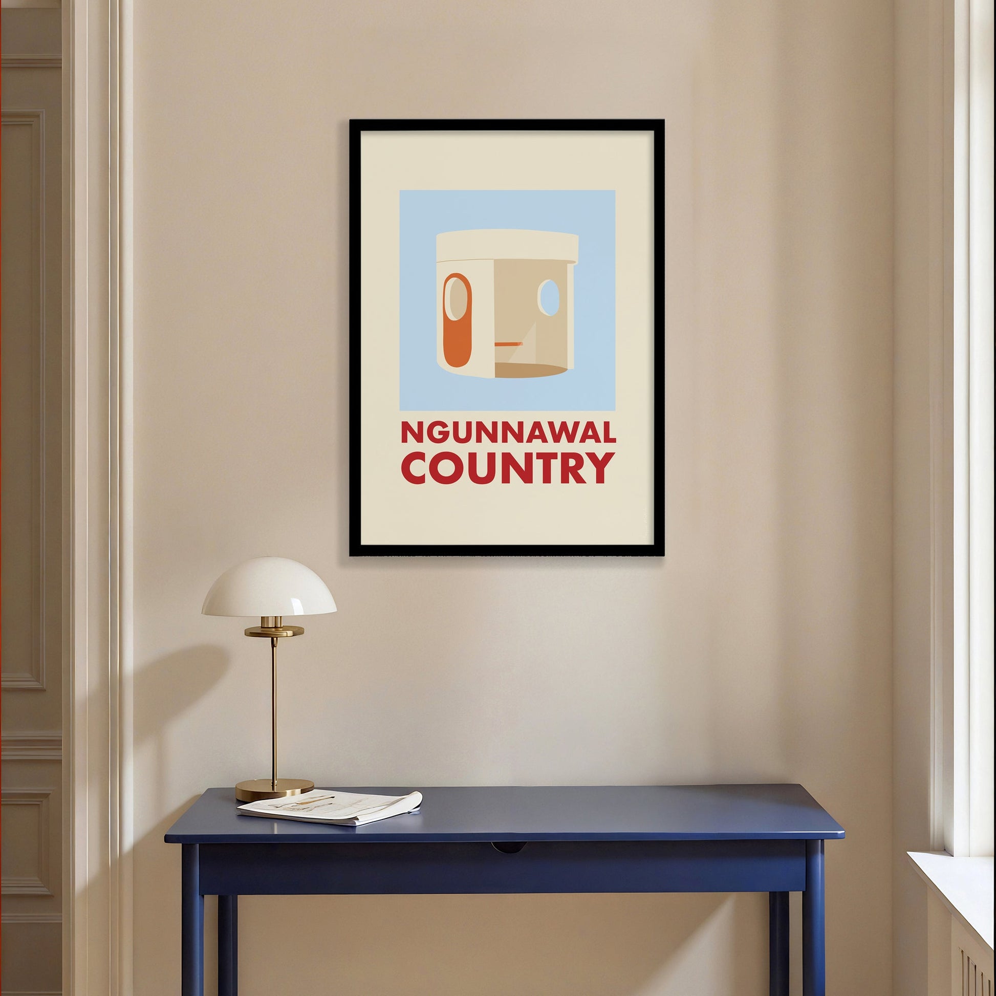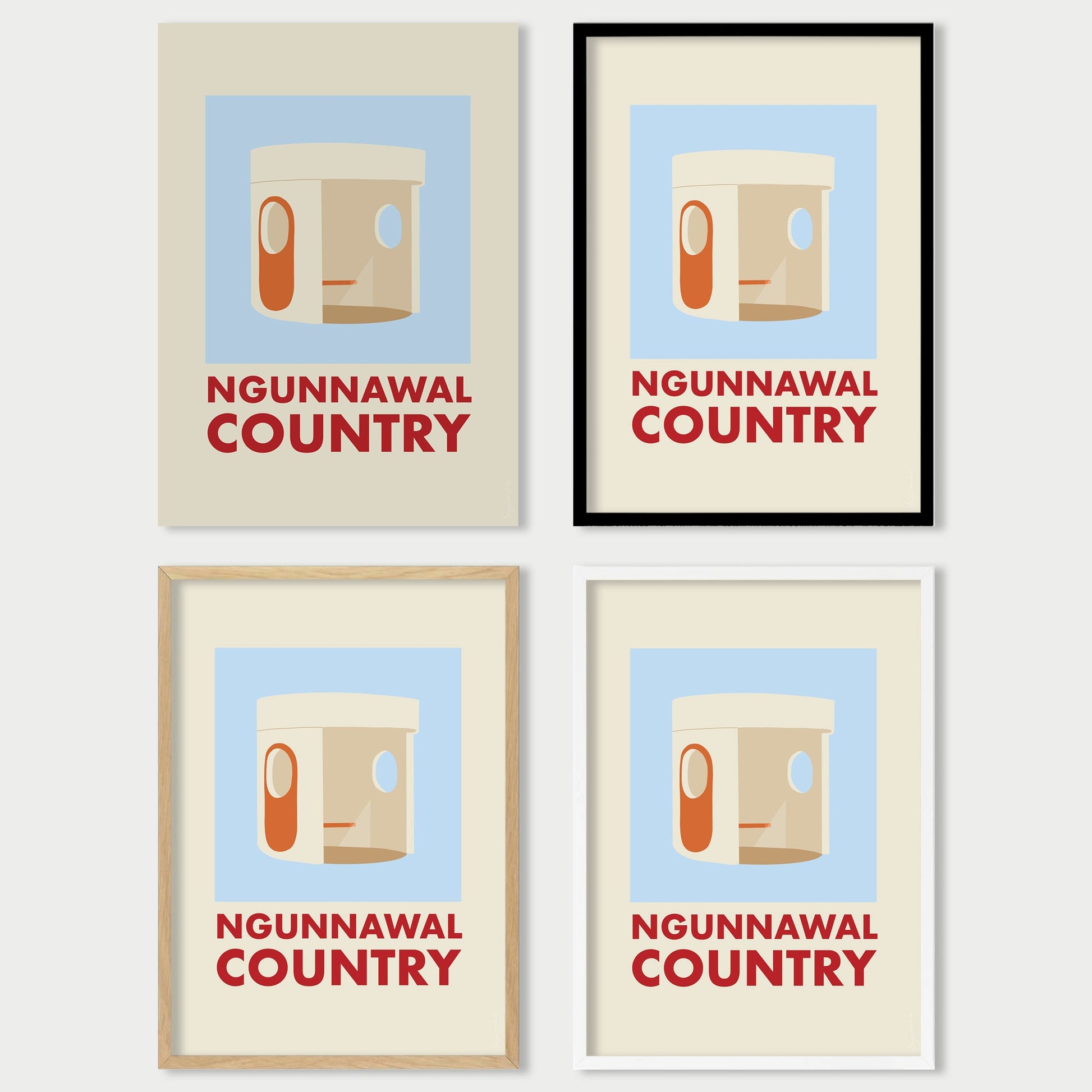 Fine art print created by Kamilaroi artist and designer Teagan Malcolm. This series explores the landmarks, moments, and icons that shape my memories, and how they connect to what it means to me as an Aboriginal person in this moment of our long and continuing history. This work commemorates contemporary experiences while acknowledging traditional lands. Teagan was born in Canberra, on Ngunnawal Country, and these bus stops are a vivid memory, a modern icon and a uniquely Canberra experience.