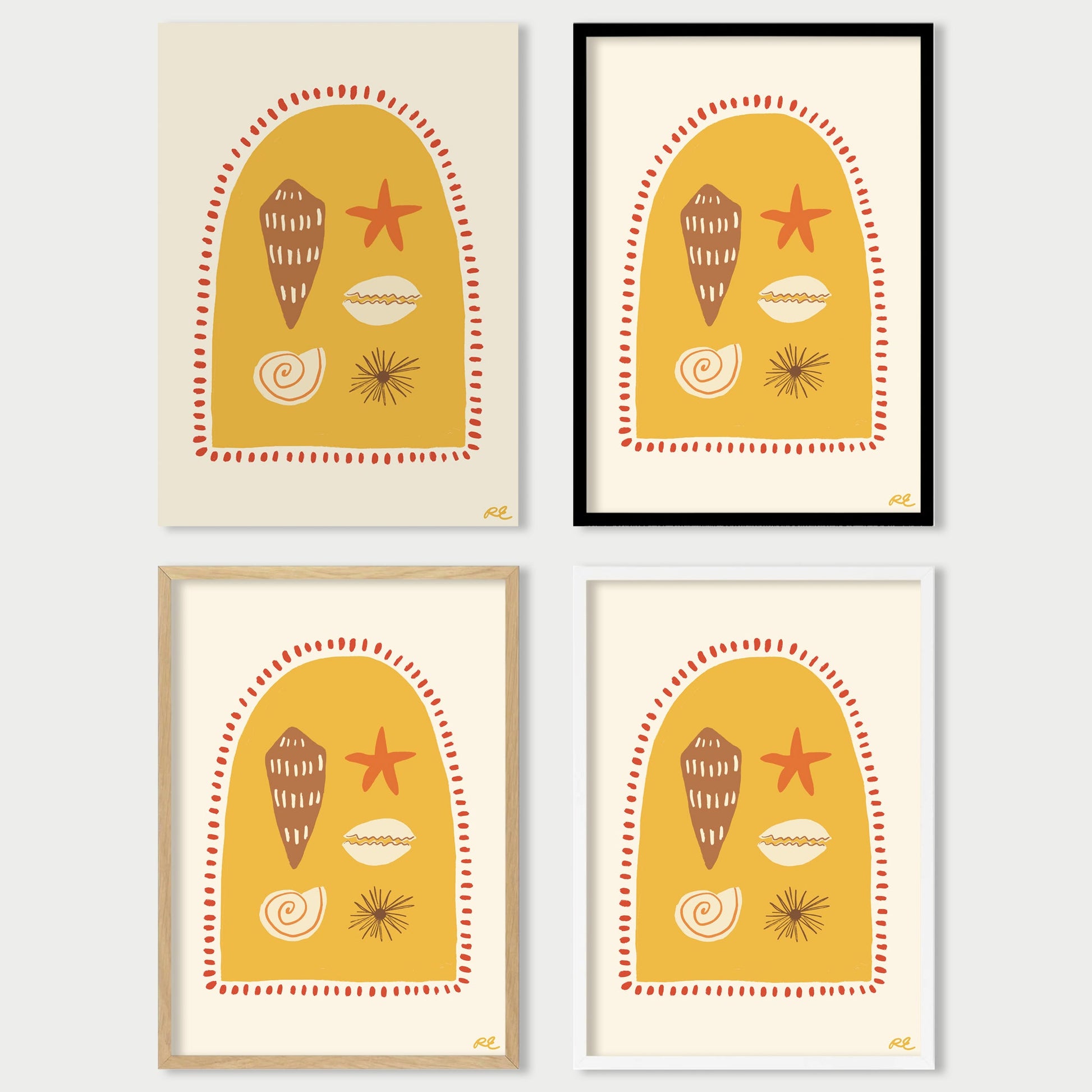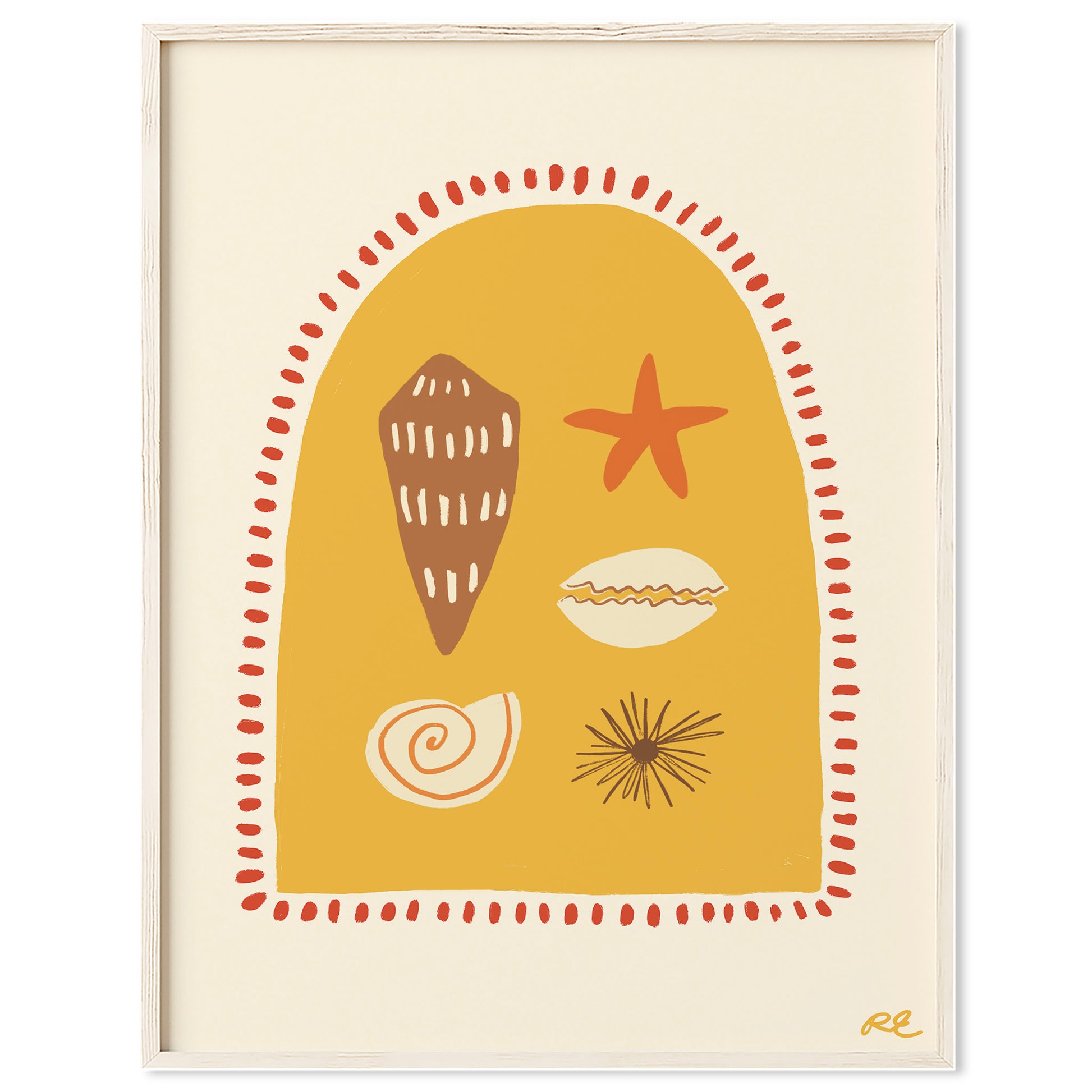 This fine art poster by Rosa Studio presents a series of shells and sea creatures found amongst the rock pools at the beach.