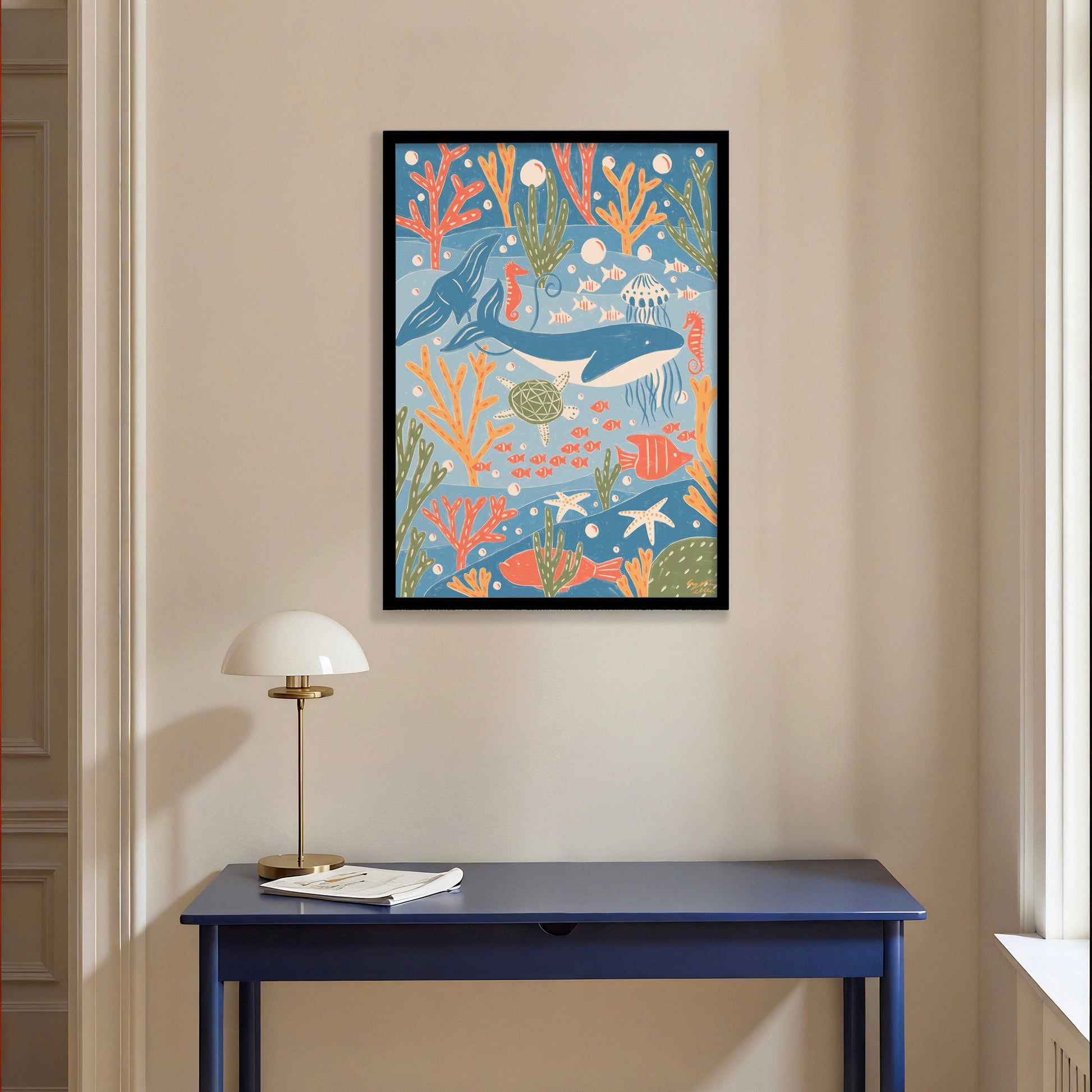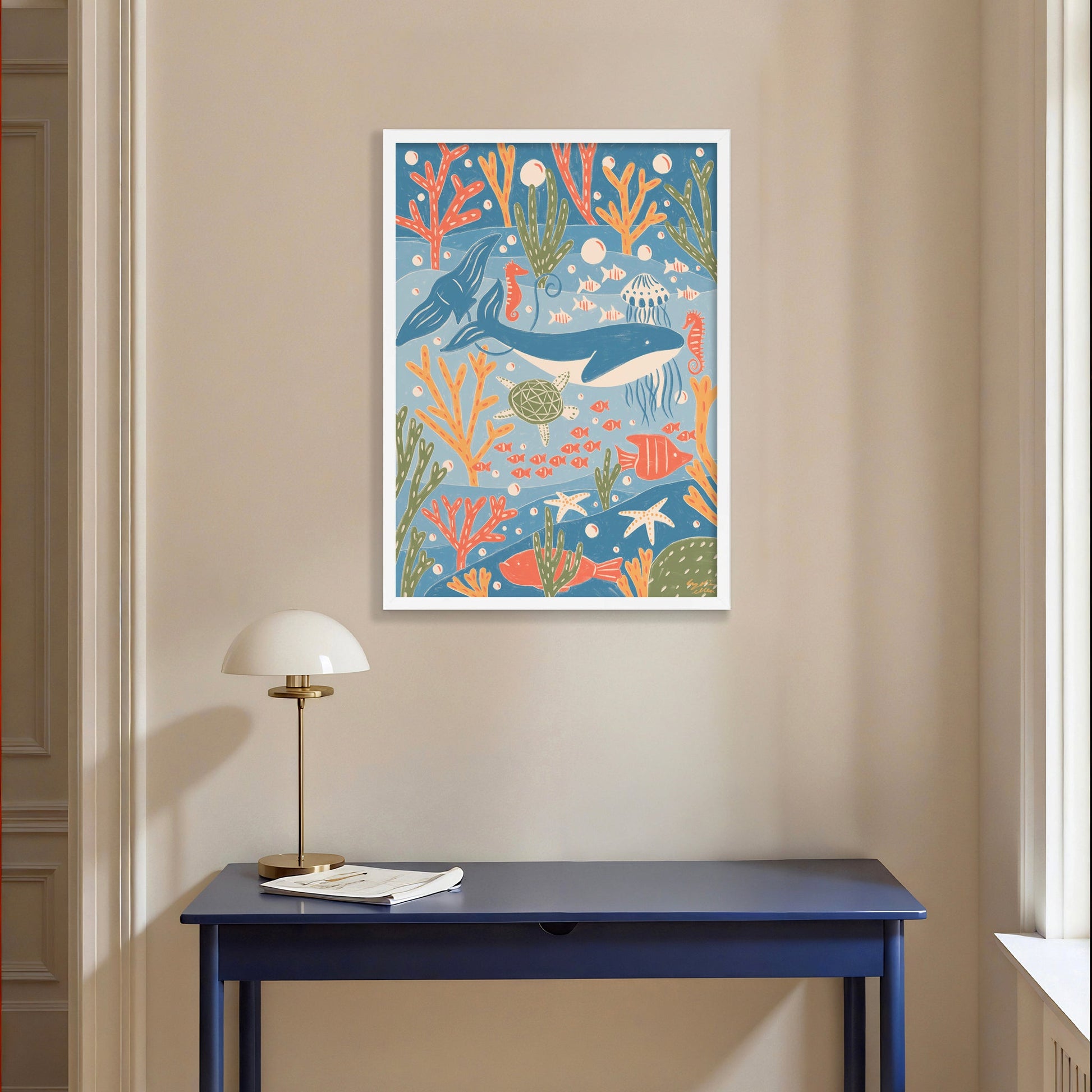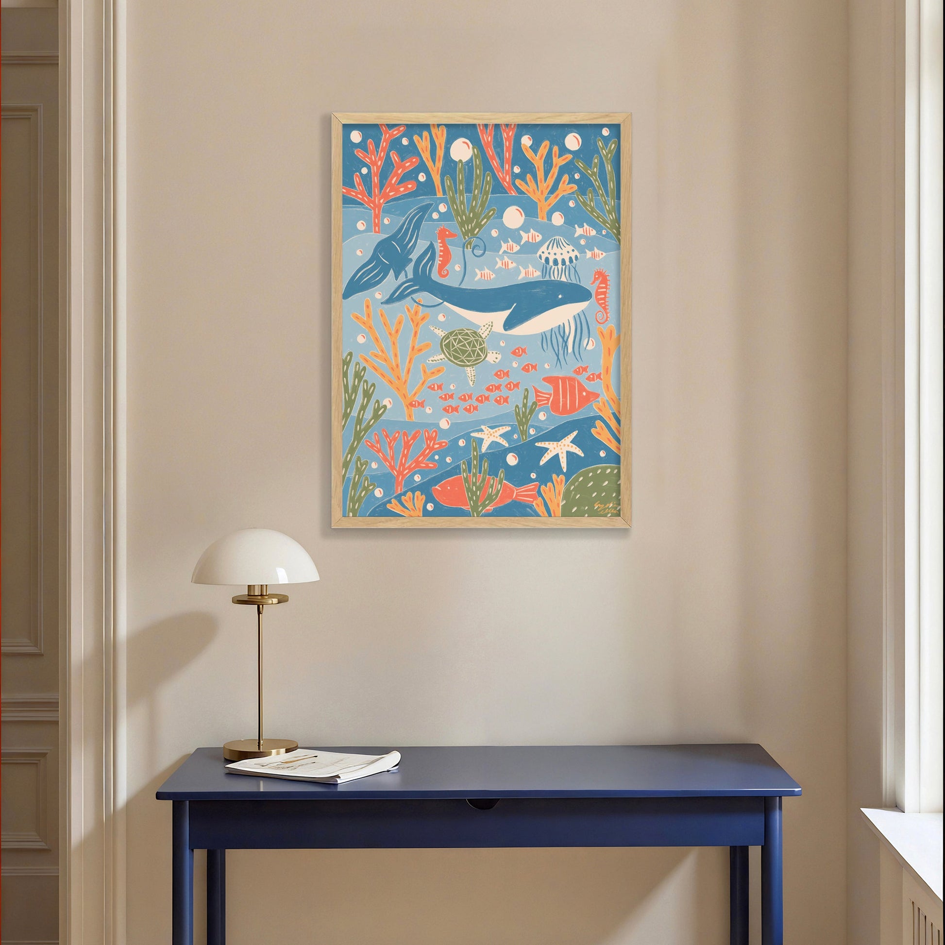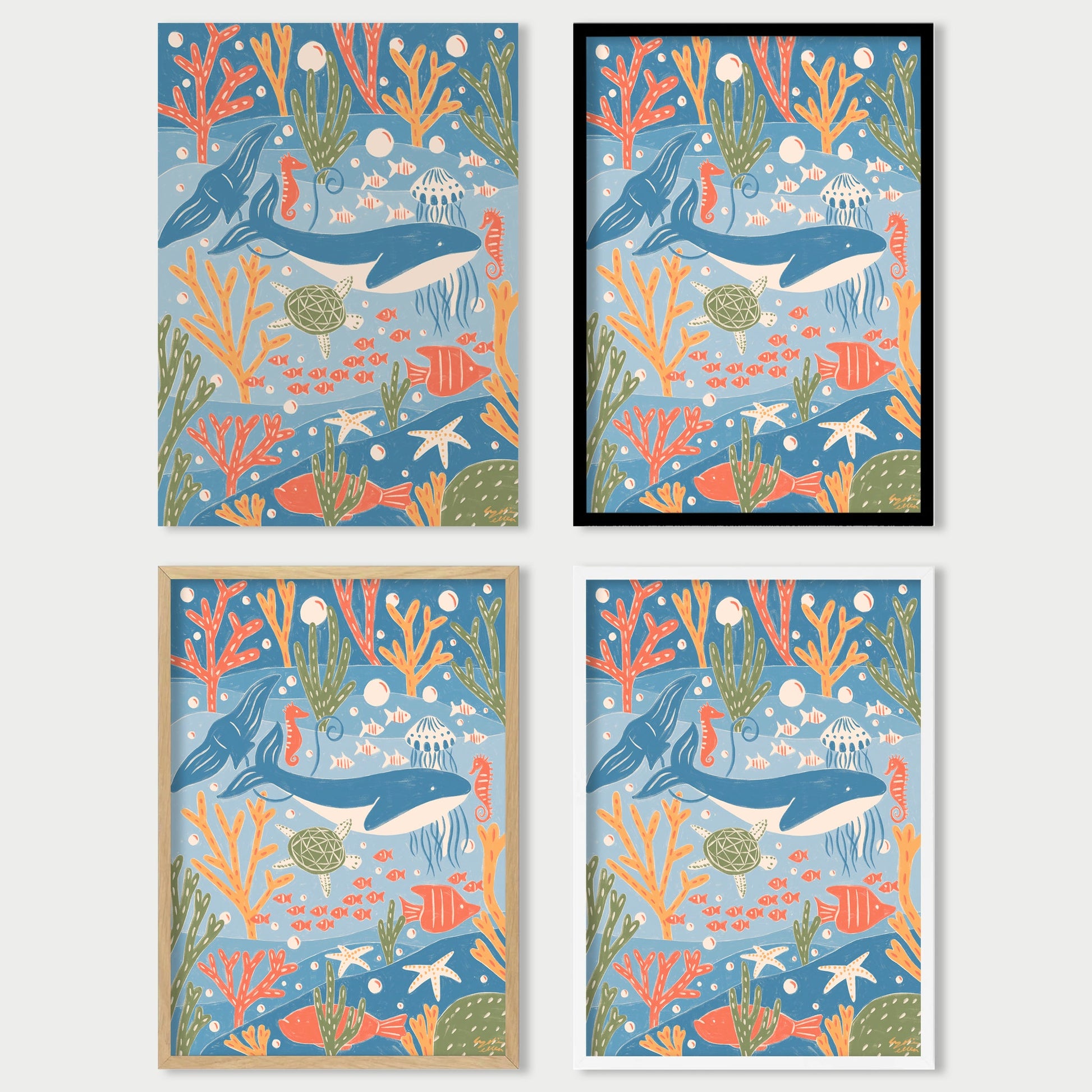 This fine art print by Lydia Ellen invites viewers to playfully dive into the mesmerizing aquatic realm, where the dance of marine creatures and the ebb and flow of the tides tell the story of Australia's rich maritime heritage.