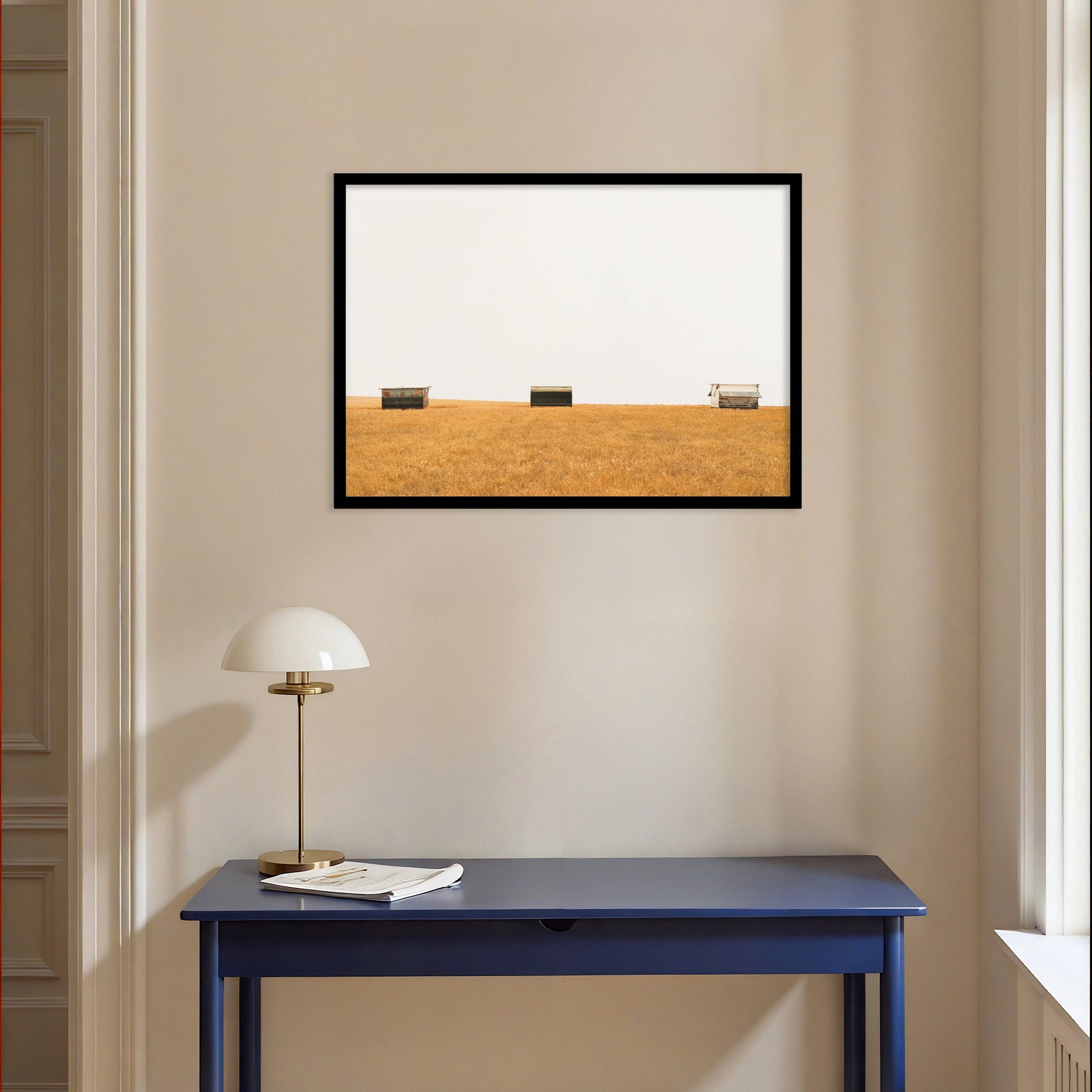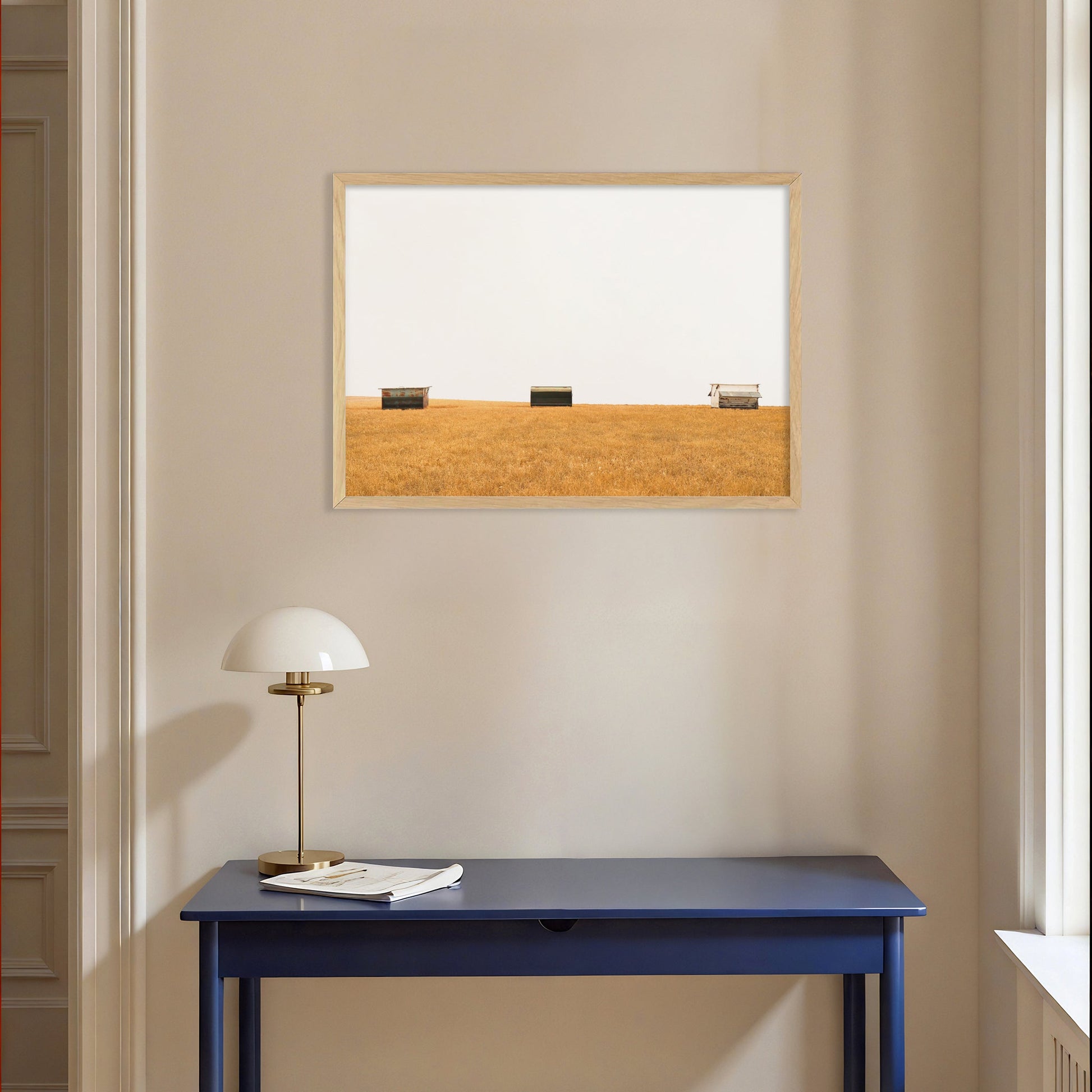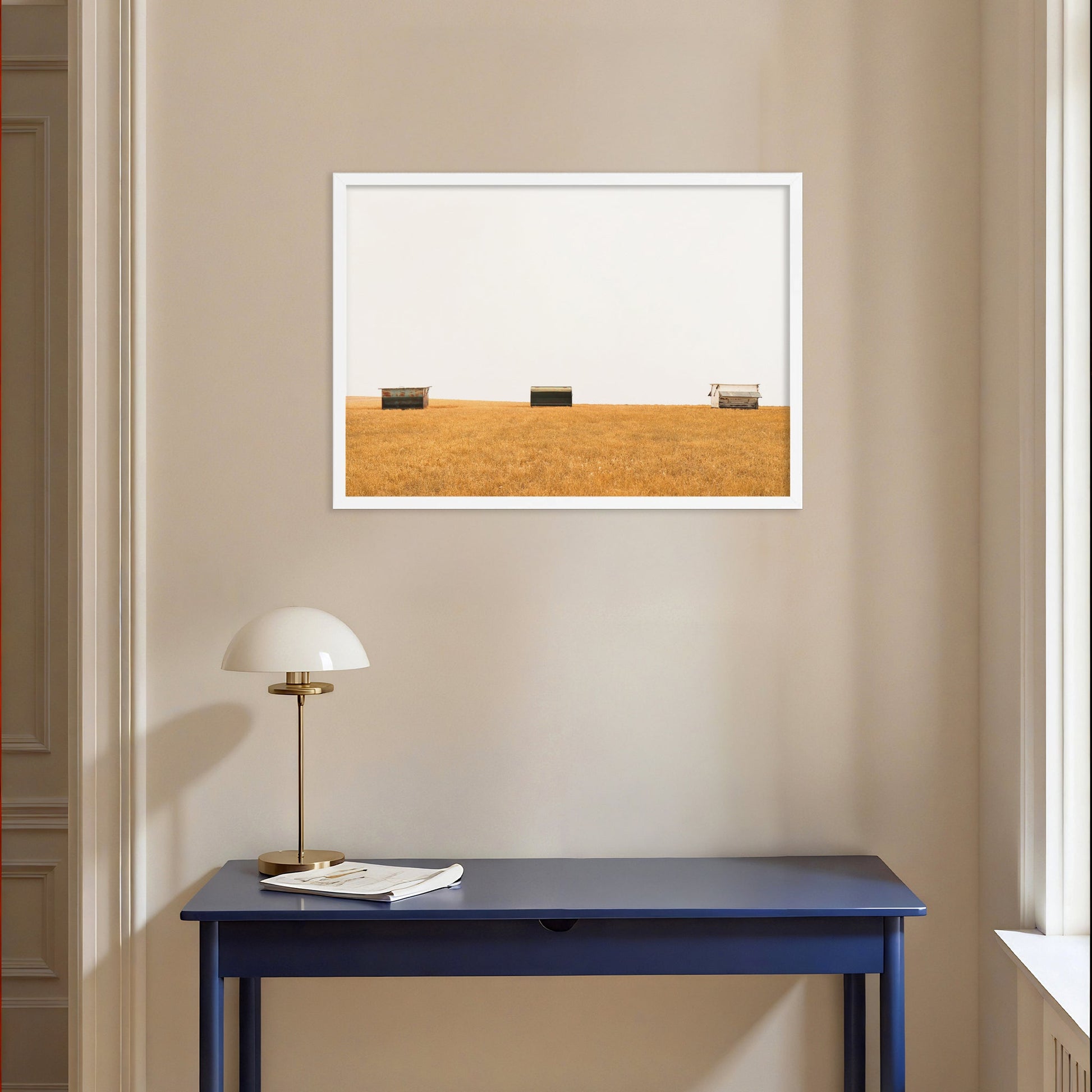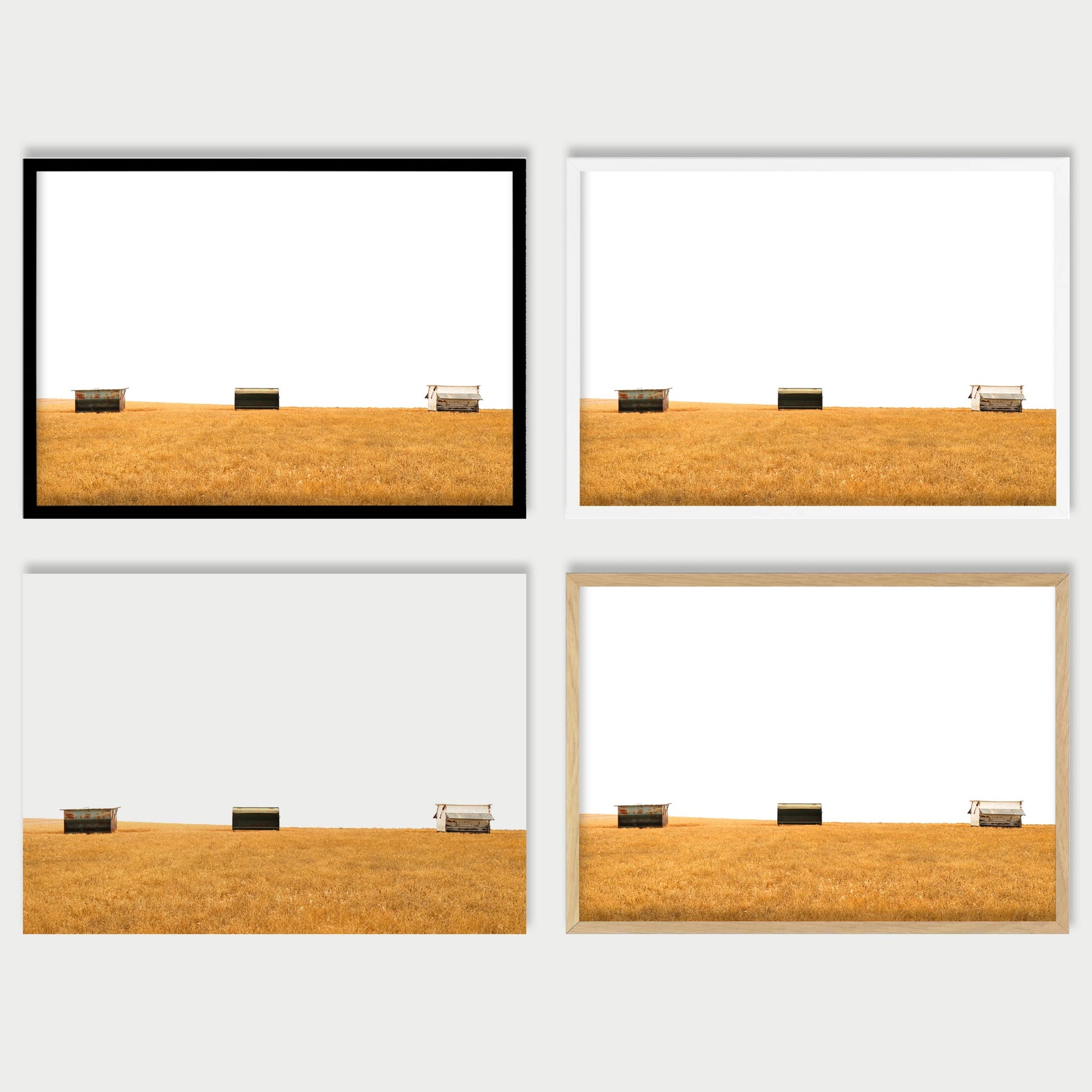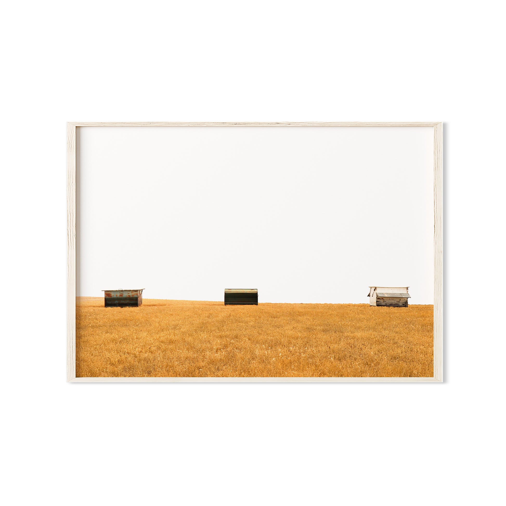 This fine art photography print captures the three sheds located in the middle of a wheat field in the Wheatbelt, Western Australia.